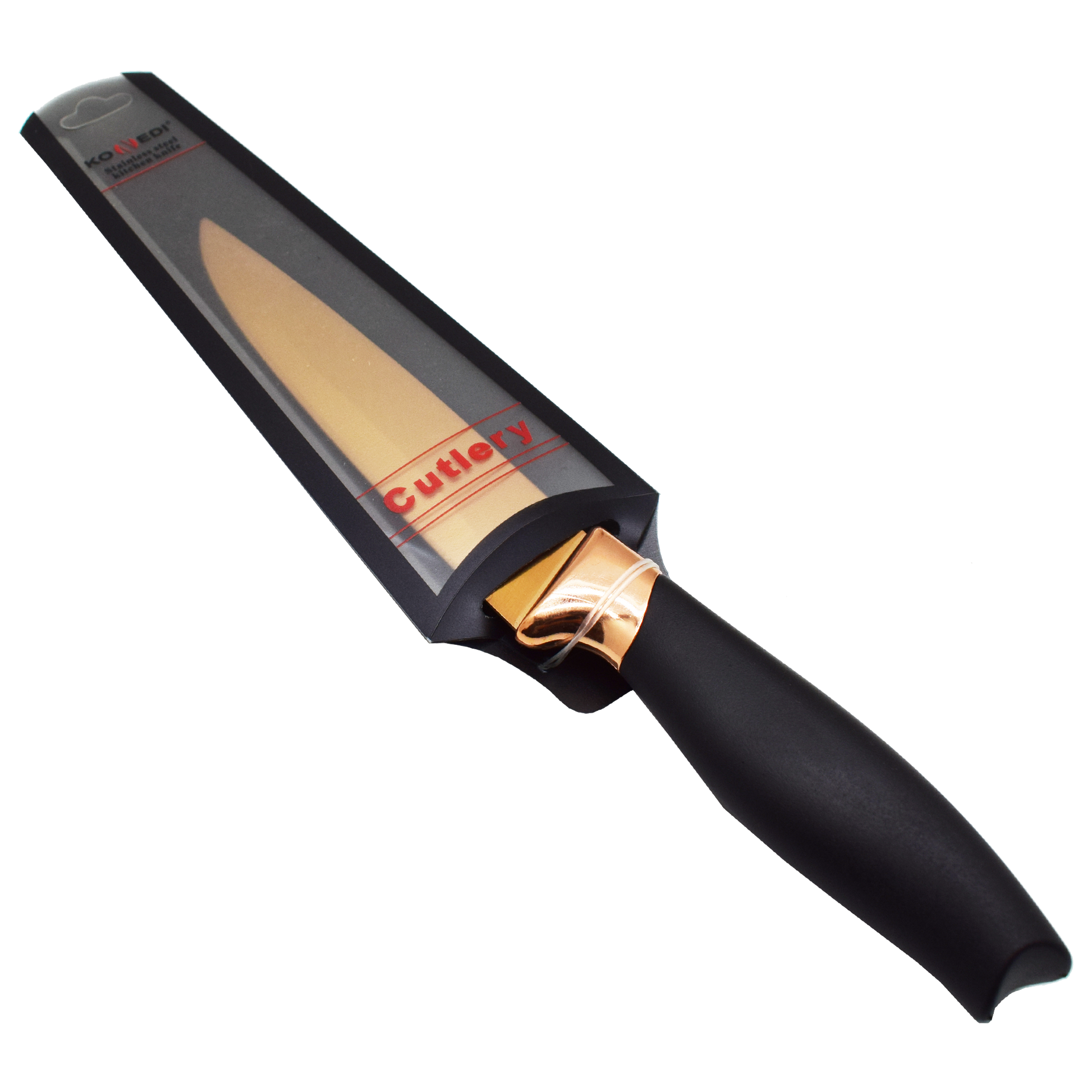 Cutit pentru legume, Naimeed D3367, gama Konedi, otel inoxidabil, culoare Rosegold / Negru, 12.5 cm