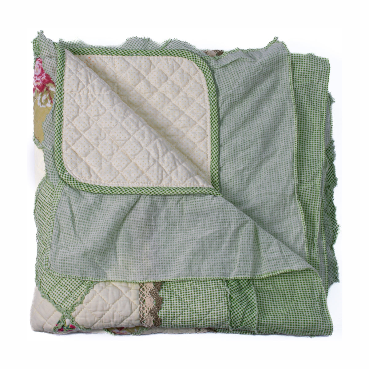 Cuvertura Canapea Naimeed D4904L, Pufoasa, Matlasata,cu Model Floral Verde Deschis