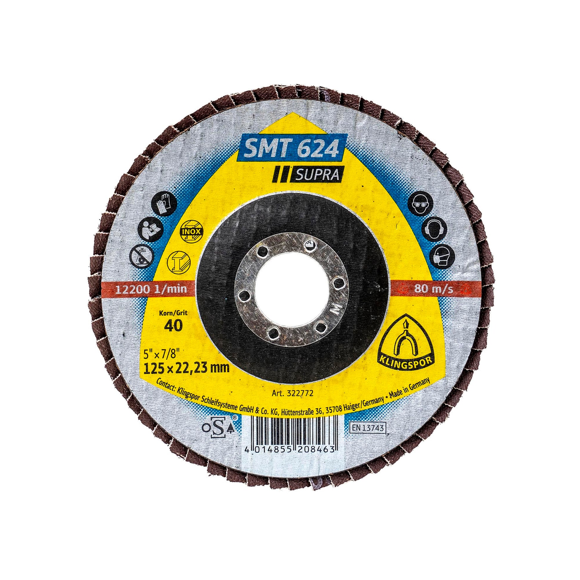 Disc lamelar frontal Klingspor SMT 624 Supra, P40 125X22.23 mm / EXT 322772