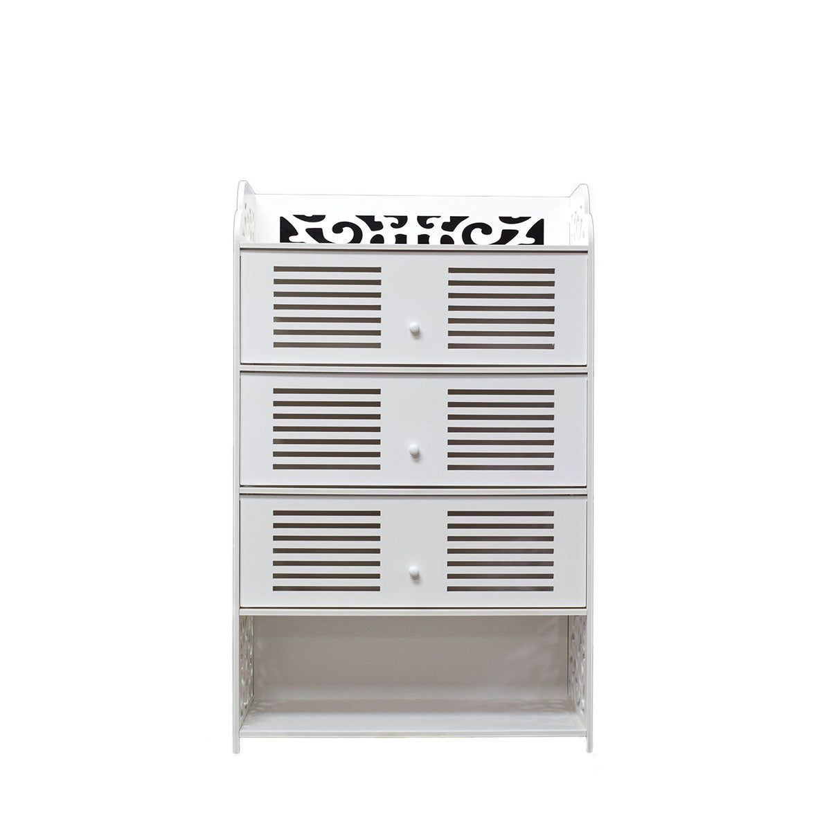 Dulap modern cu 4 rafturi, usor de asamblat, poate fi poziționat în orice colț din casă datorită formei compacte. Ideal pentru bucătărie, living, birou, hol, etc.