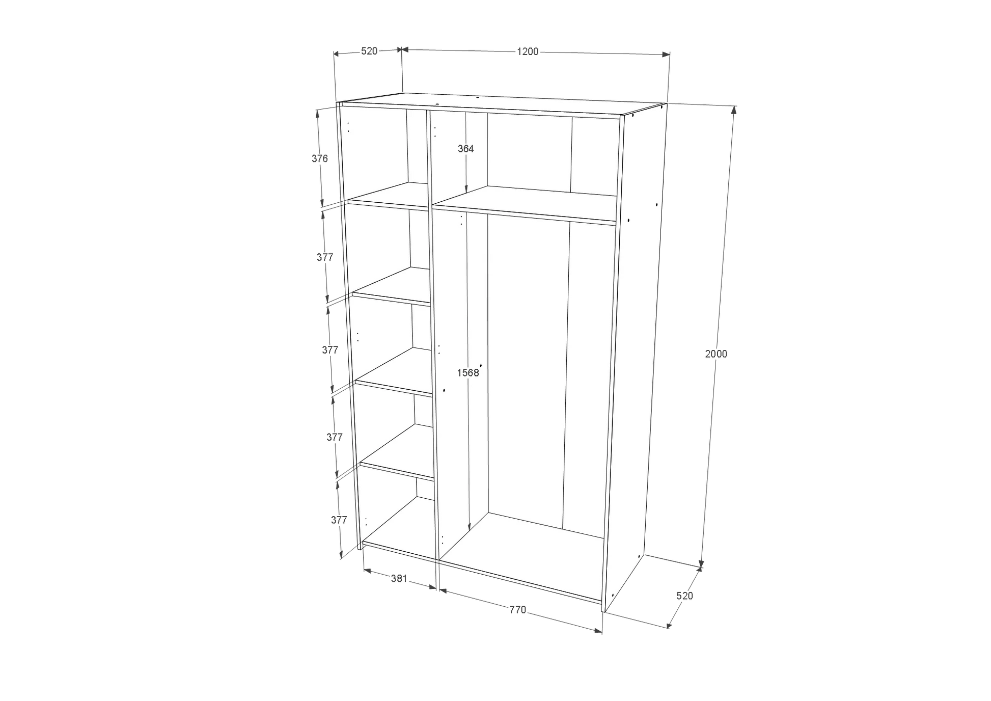 • Dimensiuni: L 120 x l 52 x H 200 cm