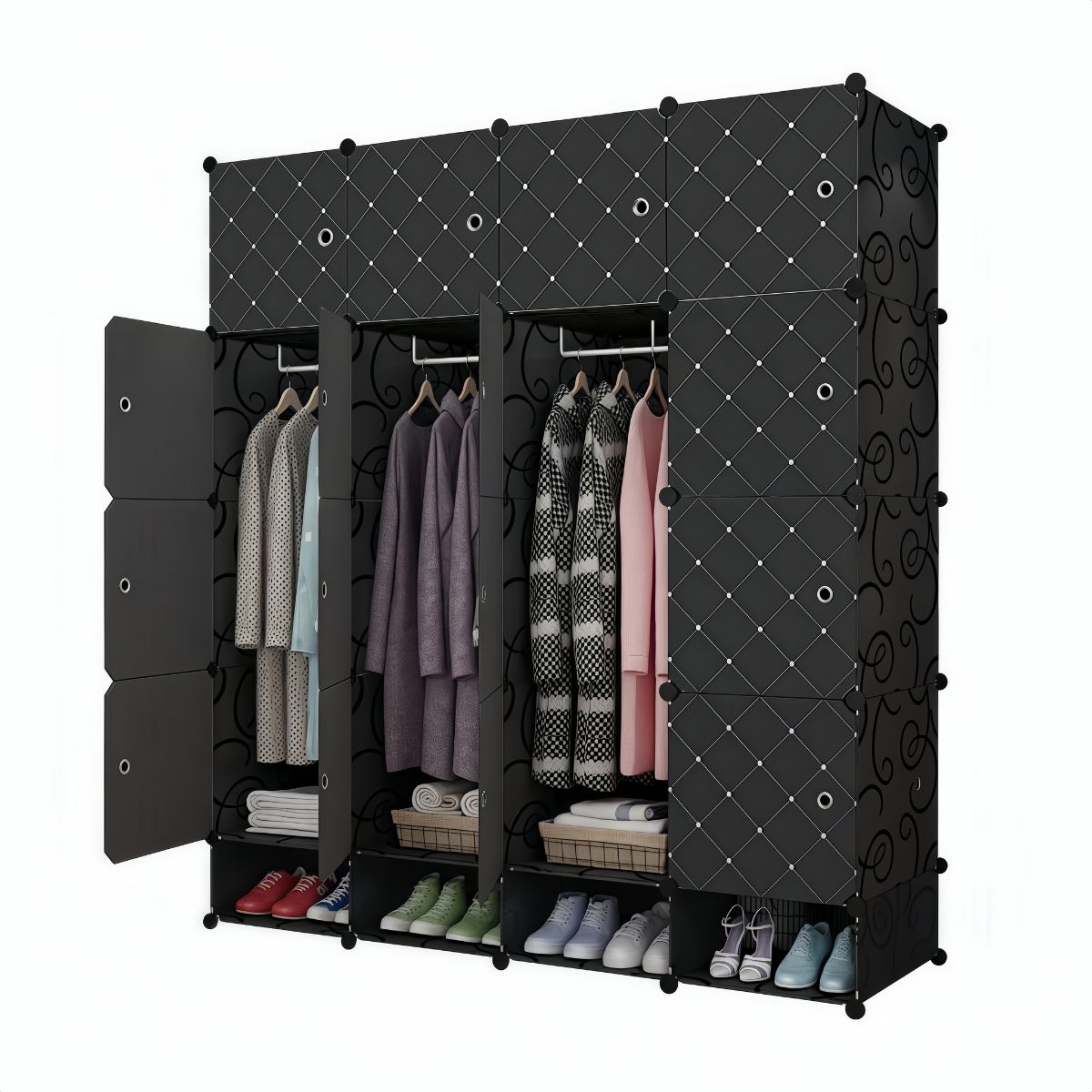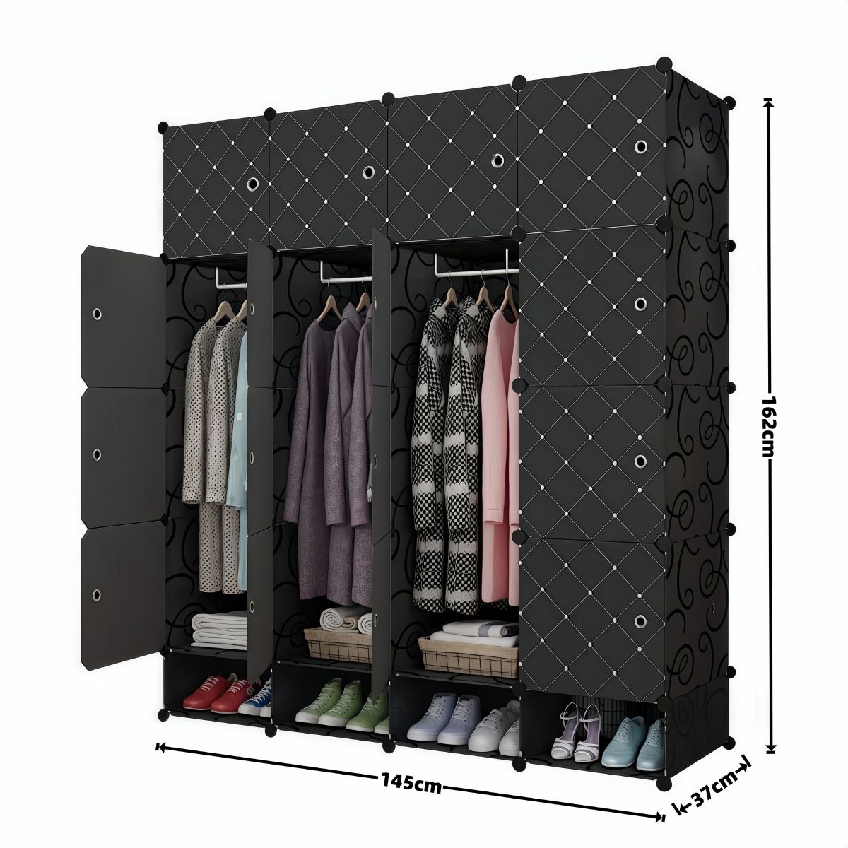 Dulap Modular, 16 Usi, Naimeed D7135, 162x145x37cm, Negru