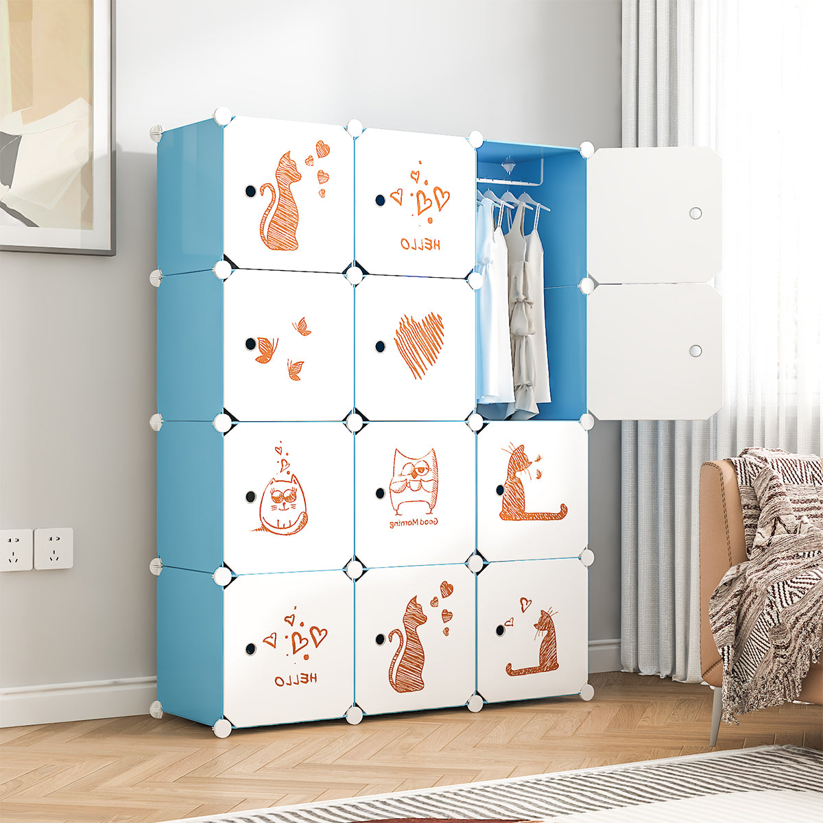 Dulap Modular, camera copii, 12 usi, Naimeed D6621, Albastru, 147x110x37 cm