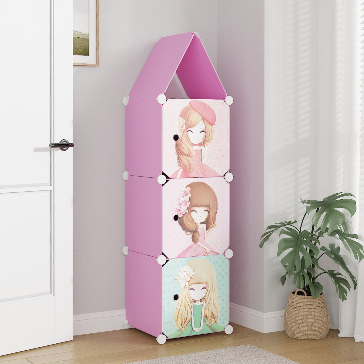 Dulap Modular, camera copii, 3 usi, Naimeed D6605, Roz, 128x37x37 cm