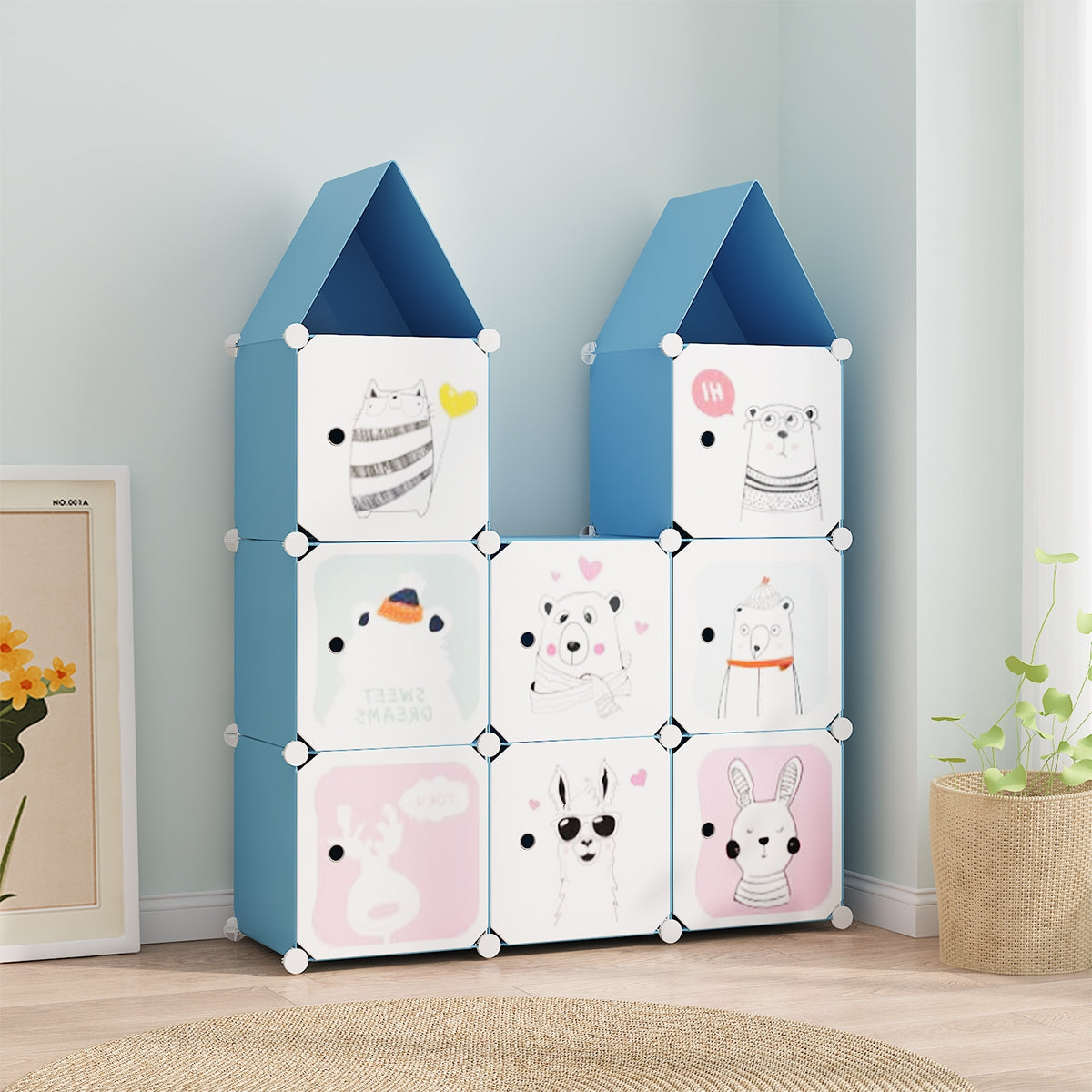 Dulap Modular, camera copii, 8 usi, Naimeed D6594, Albastru, 128x110x37cm