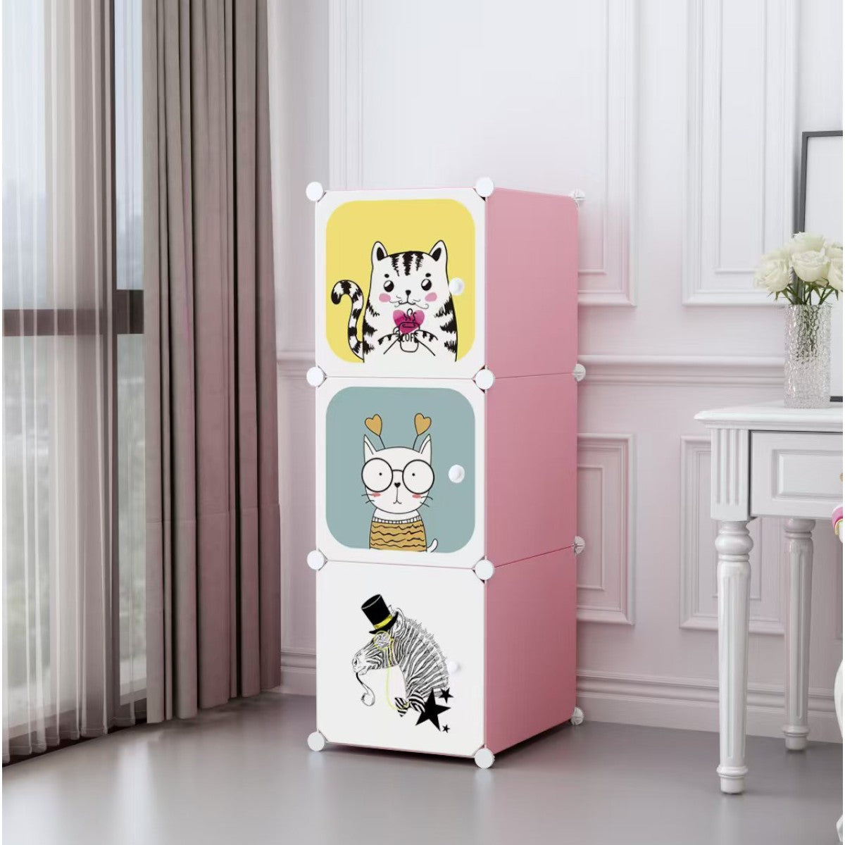 Dulap Modular Copii, 3 Usi, Naimeed D6842, 110x35x35 cm, Roz
