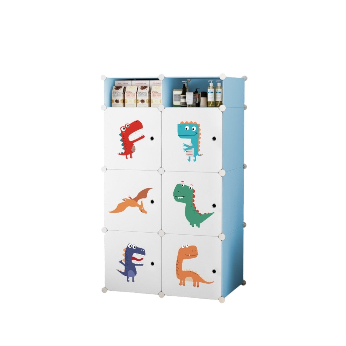 Dulap Modular Copii, 6 Usi, Naimeed D6857, 110x75x37 cm, Alb-albastru