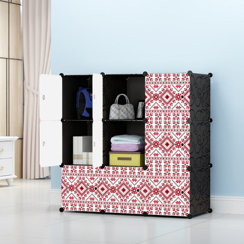 Dulap modular din plastic cu schelet metalic, imprimeu traditional, Naimeed D3424N, culoare Negru, 111x111x37 cm
