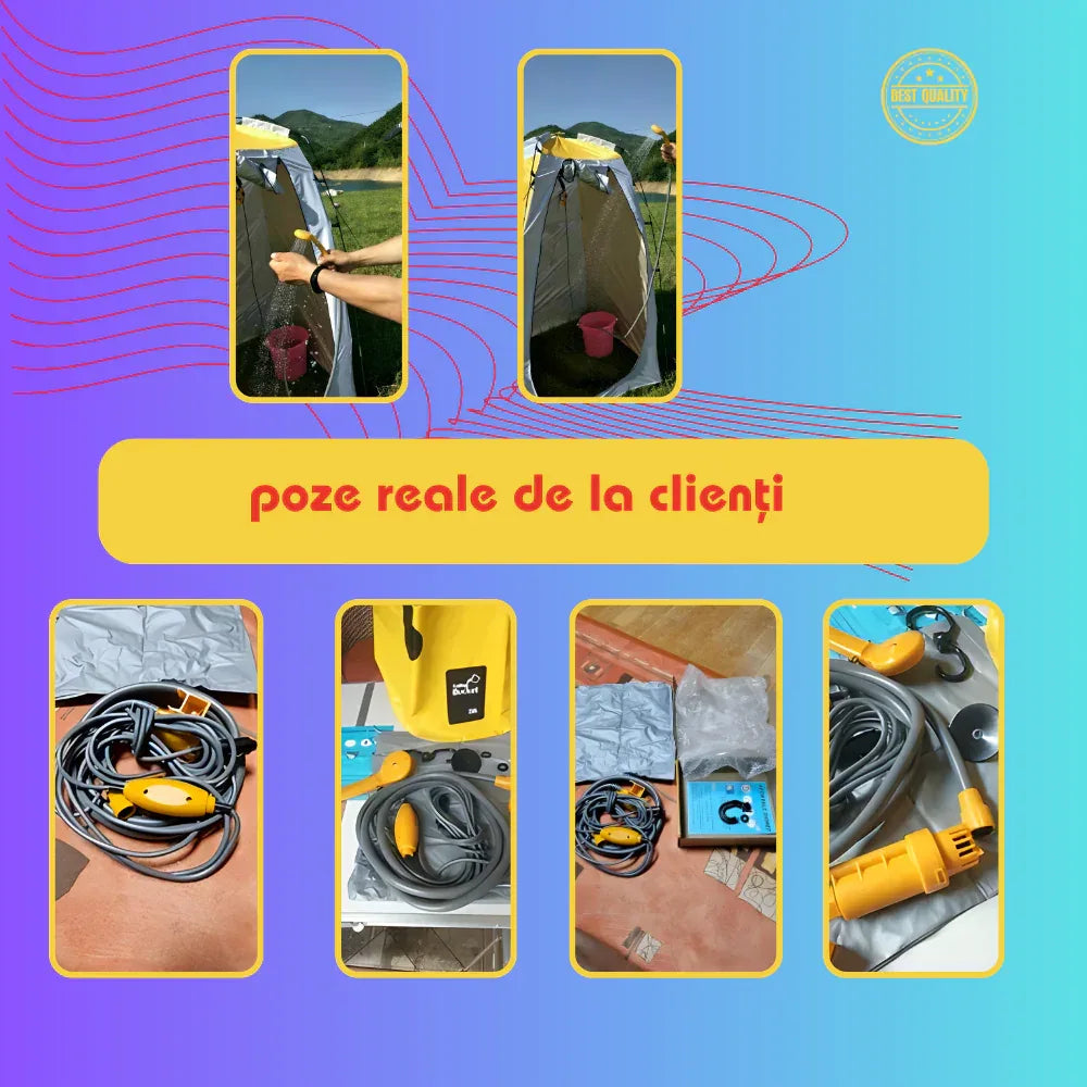 Descoperă dușul portabil pentru mașină de 12V, ideal pentru camping, călătorii și plajă. Ușor de utilizat, cu presiune ajustabilă și accesorii incluse. Comandă acum și bucură-te de o experiență de curățare confortabilă!
