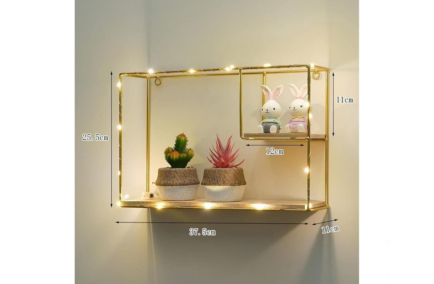 Etajera suspendata, aurie cu luminite Led, 38*26*11 cm, D58