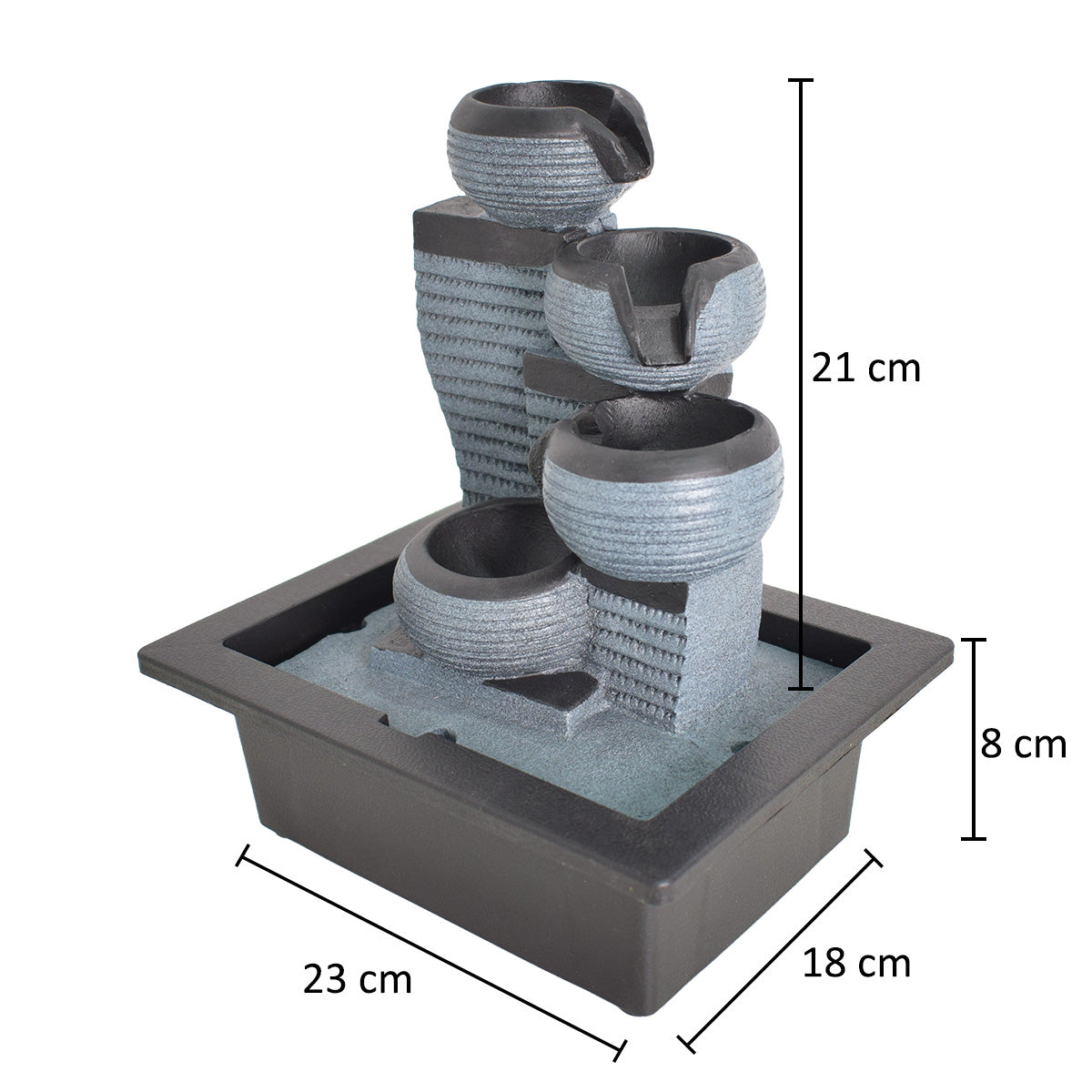 Redand sunetele unei mici cascade, fantana functioneaza drept un articol decorativ deosebit dar si ca mediu de relaxare.