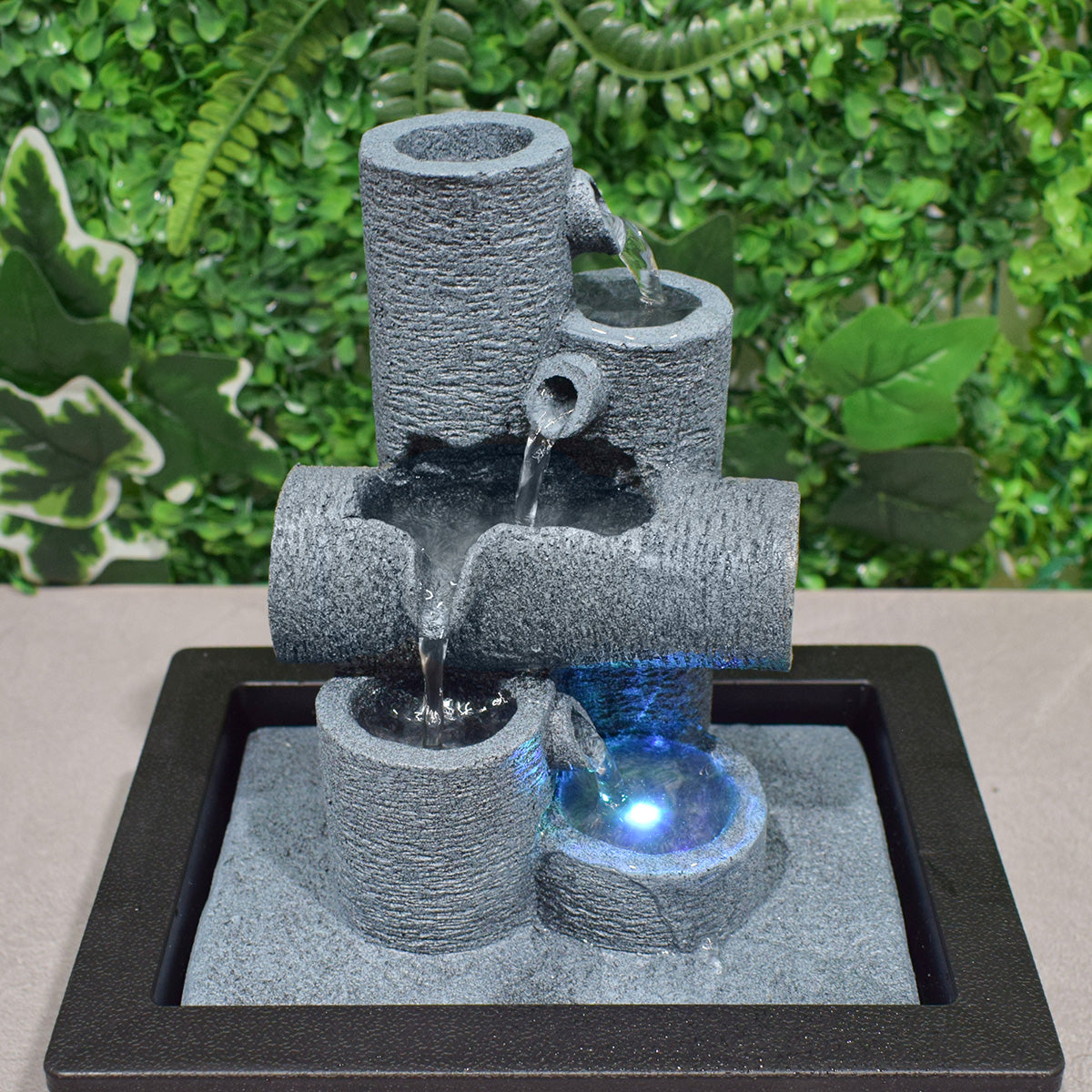 Redand sunetele unei mici cascade, fantana functioneaza drept un articol decorativ deosebit dar si ca mediu de relaxare.