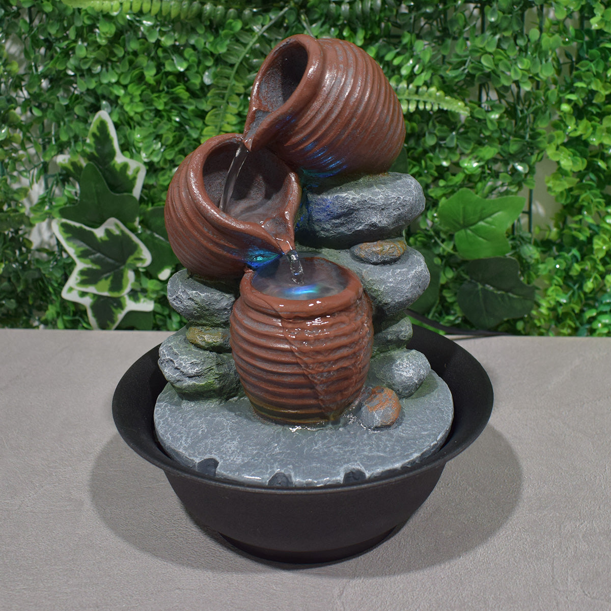 Redand sunetele unei mici cascade, fantana functioneaza drept un articol decorativ deosebit dar si ca mediu de relaxare.