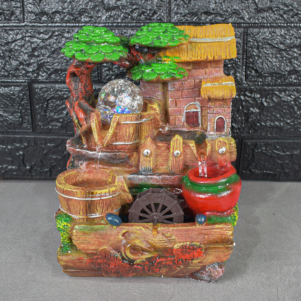 Redand sunetele unei mici cascade, fantana functioneaza drept un articol decorativ deosebit dar si ca mediu de relaxare.