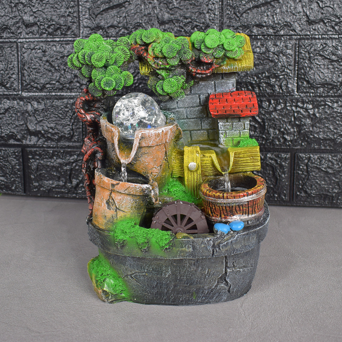 Redand sunetele unei mici cascade, fantana functioneaza drept un articol decorativ deosebit dar si ca mediu de relaxare.