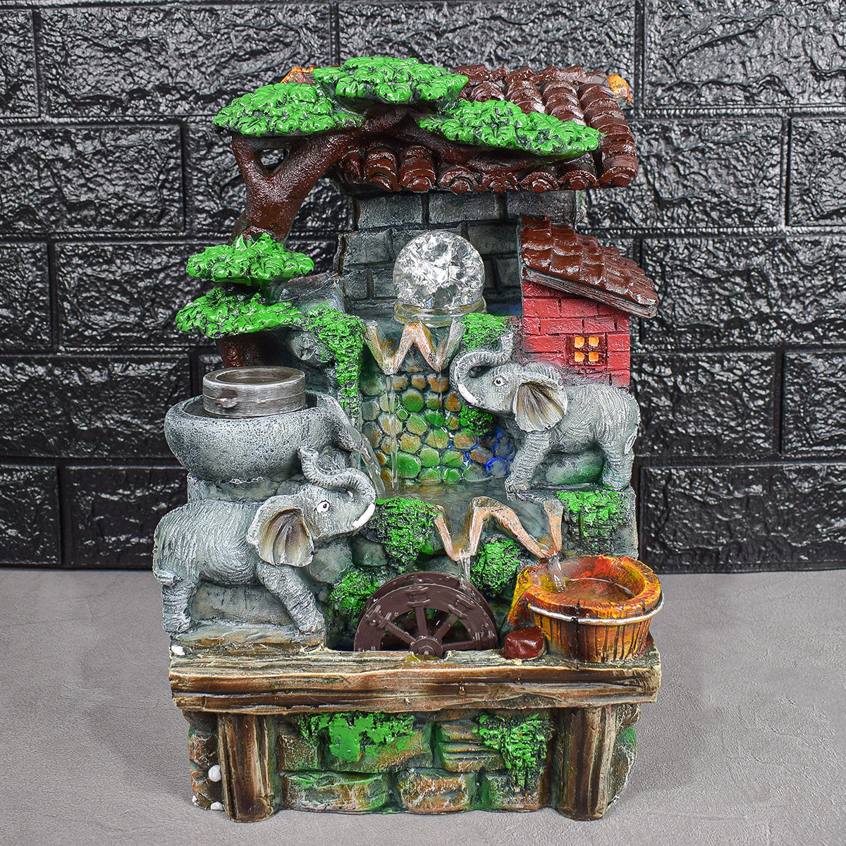 Bila rulanta a fantanii este iluminata de un sistem LED multicolor pentru a oferi o atmosfera calma si linistitoare.