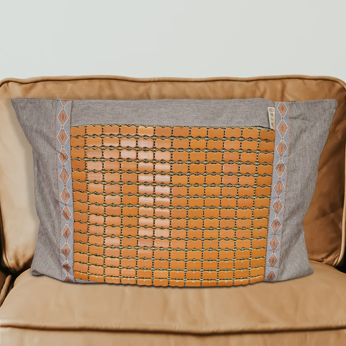 Modelul pieselor de bambus aduce un sentiment de armonie si echilibru in designul pernei.