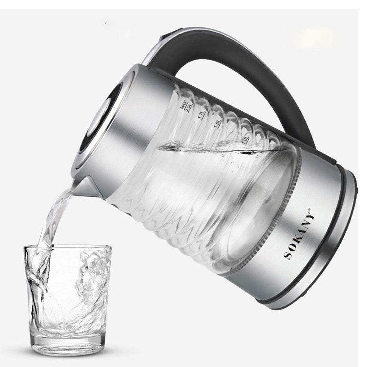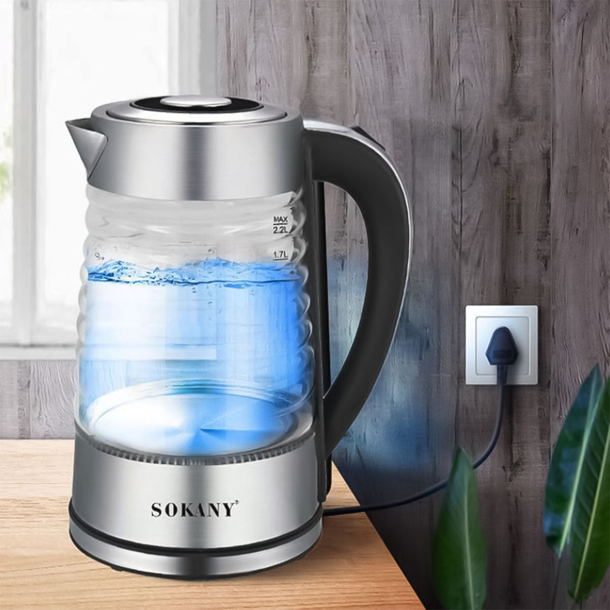 Fierbator apa, Sokany SK-1027, 2000W, capacitate 2.2L, control temperatura, indicator luminos, Argintiu