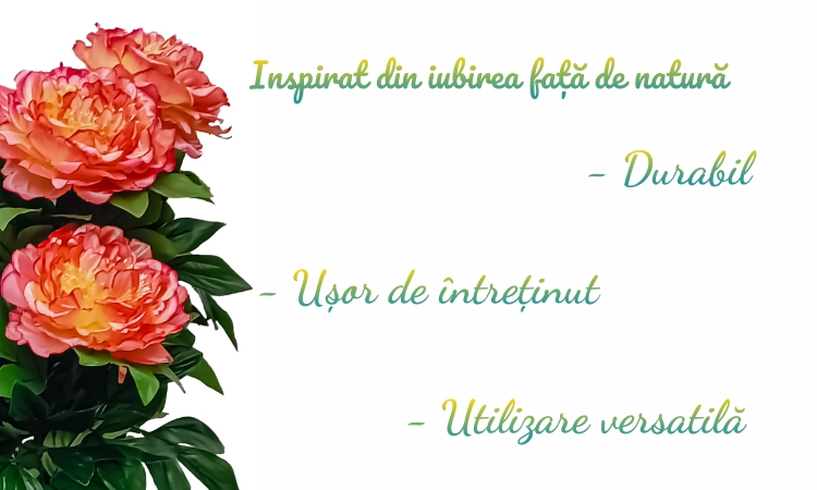 Durabil - Cu flori si frunze realizate din plastic PE de inalta calitate (polietilena), ramane la fel de proaspata an dupa an.