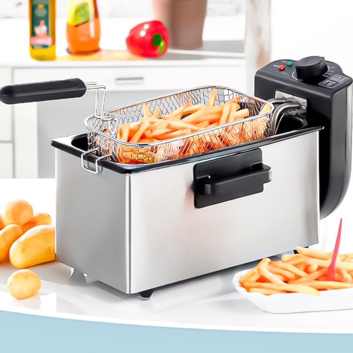 Rezervorul mare de ulei asigura o prajire mai rapida si mai uniforma, suficienta pentru a prepara alimente pentru familie, nefiind nevoit sa prepari de doua ori in situatia in care ai invitati sau doresti sa servesti mai multe portii.