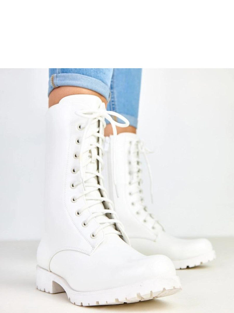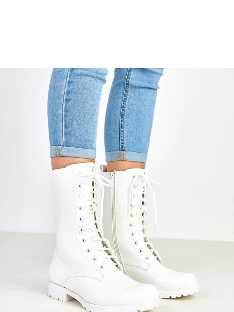 Mocasini albi moderni pentru femei fabricați din piele ecologică de înaltă calitate. Modelul are vârf rotund și un guler de 22,5 centimetri, care îmbracă stabil glezna și adaugă caracter fiecărei ținute. Pantofii sunt așezați pe un toc coloană cu o talpă de cauciuc solidă, ceea ce asigură confort și stabilitate în timpul mersului. Închiderea cu șireturi combinată cu fermoarul facilitează potrivirea și îmbrăcarea rapidă. Interiorul este finisat cu material textil, ceea ce garantează confortul purtării pe tot parcursul zilei. Acești mocasini albi sunt alegerea perfectă pentru ținutele casual de zi cu zi, se potrivesc de minune atât cu blugii, cât și cu o rochie sau o fustă în stil urban.