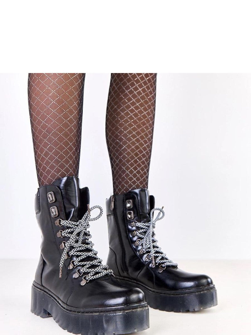 Traperii eleganți și feminini, cu șireturi și cristale decorative, sunt o alegere perfectă pentru femeile care apreciază confortul combinat cu o apariție la modă. Realizate din piele ecologică de înaltă calitate, acestea arată elegant și sunt rezistente la utilizarea zilnică. Modelul are vârful rotund și interior căptușit, care garantează confortul și căldura în zilele mai reci. Șireturile permit o potrivire perfectă pe picior, iar fermoarul suplimentar asigură confortul la încălțare și descălțare. Pantofii sunt așezați pe un toc stabil de 5 cm înălțime, care conferă lejeritate siluetei și asigură confortul în timpul mersului. Glezna de 16,5 cm înălțime protejează glezna și subliniază linia subțire a piciorului. Cristalele decorative adaugă eleganță și strălucire subtilă întregii ținute, ceea ce face ca pantofii să se potrivească perfect atât în ținutele de zi cu zi, cât și în cele mai elegante. Talpa interioară din material sintetic este durabilă și ușor de curățat. Această combinație de funcționalitate, confort și stil feminin este ideală pentru zilele de toamnă și iarnă.