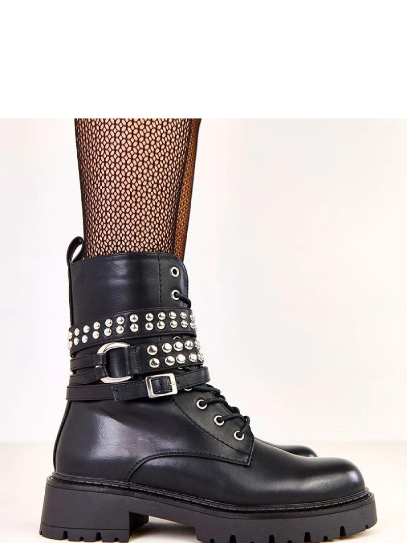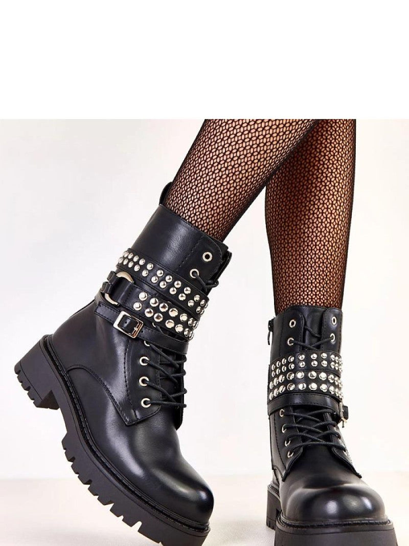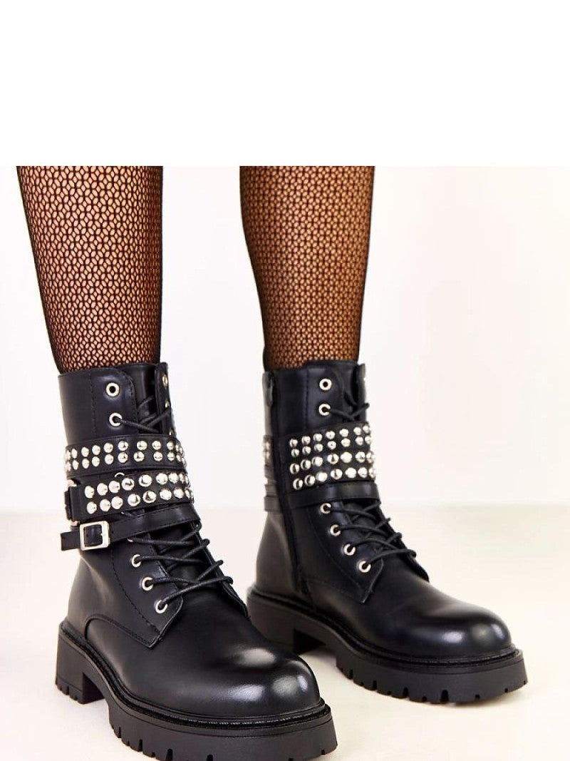 Workery legate cu un fermoar suplimentar și curele decorative cu jeturi sunt o combinație de stil urban, confort și detalii la modă. Realizate din piele ecologică, arată modern și curelele cu jeturi le conferă caracter și un accent rock. Modelul are vârf rotund și este căptușit, oferind confort termic chiar și în zilele reci. Închiderea cu șireturi în față, în combinație cu fermoarul suplimentar, permite ajustarea perfectă la picior și încălțare comodă. Tocul de 5 cm menține stabil piciorul, iar tija înaltă de 18 cm protejează glezna și conferă siluetei un aspect la modă și masiv. Talpa interioară din material sintetic asigură durabilitate și confort în utilizare.