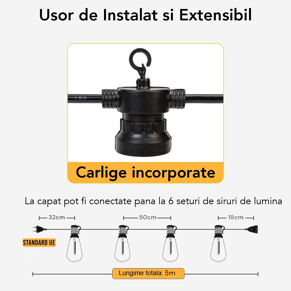 Ghirlanda decorativa de 5 metri cu 10 becuri liniare LED amplasate la o distanta de 50 cm intre ele,
