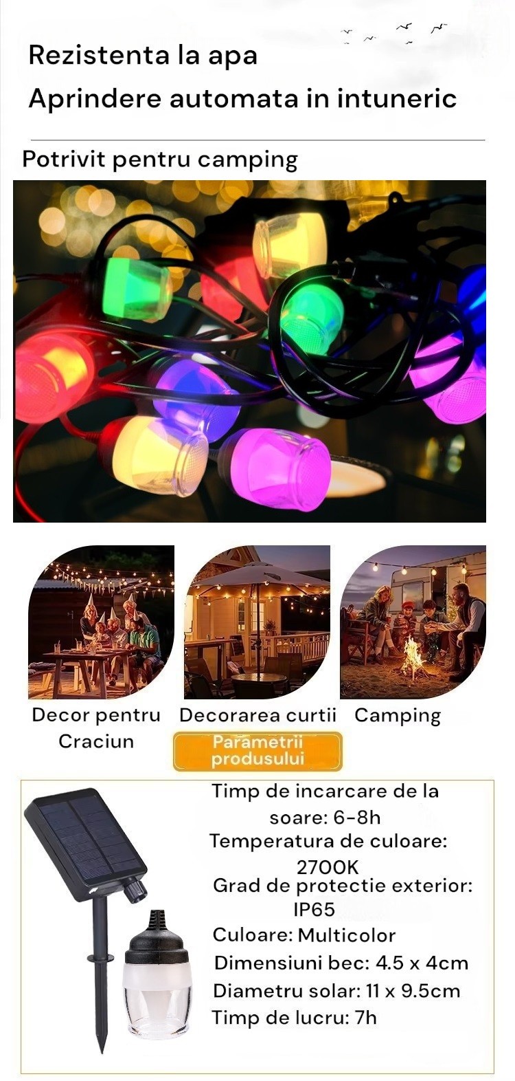 Ghirlanda luminoasa, solara, decorativa, interconectabila, Naimeed D6092, 5m, 10 Becuri LED, Lumina Multicolor