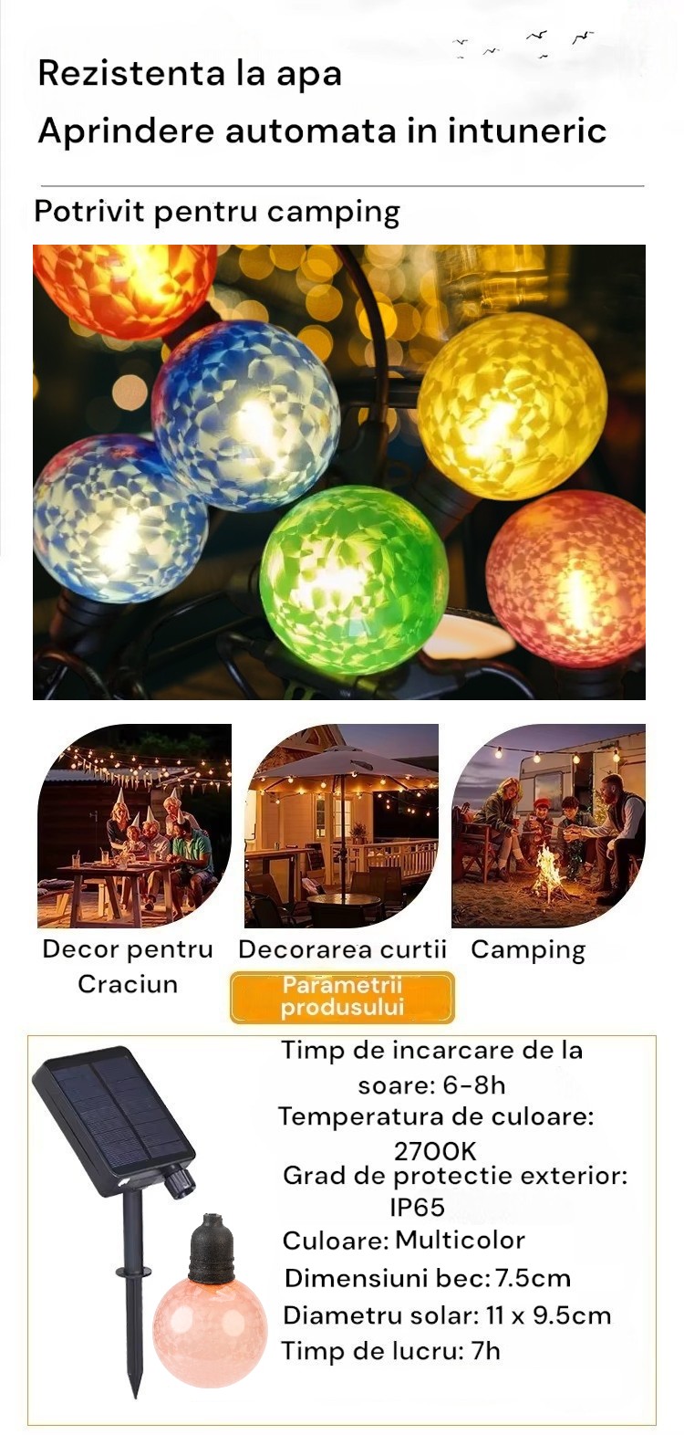 - Dimensiuni becuri: 7.5cm