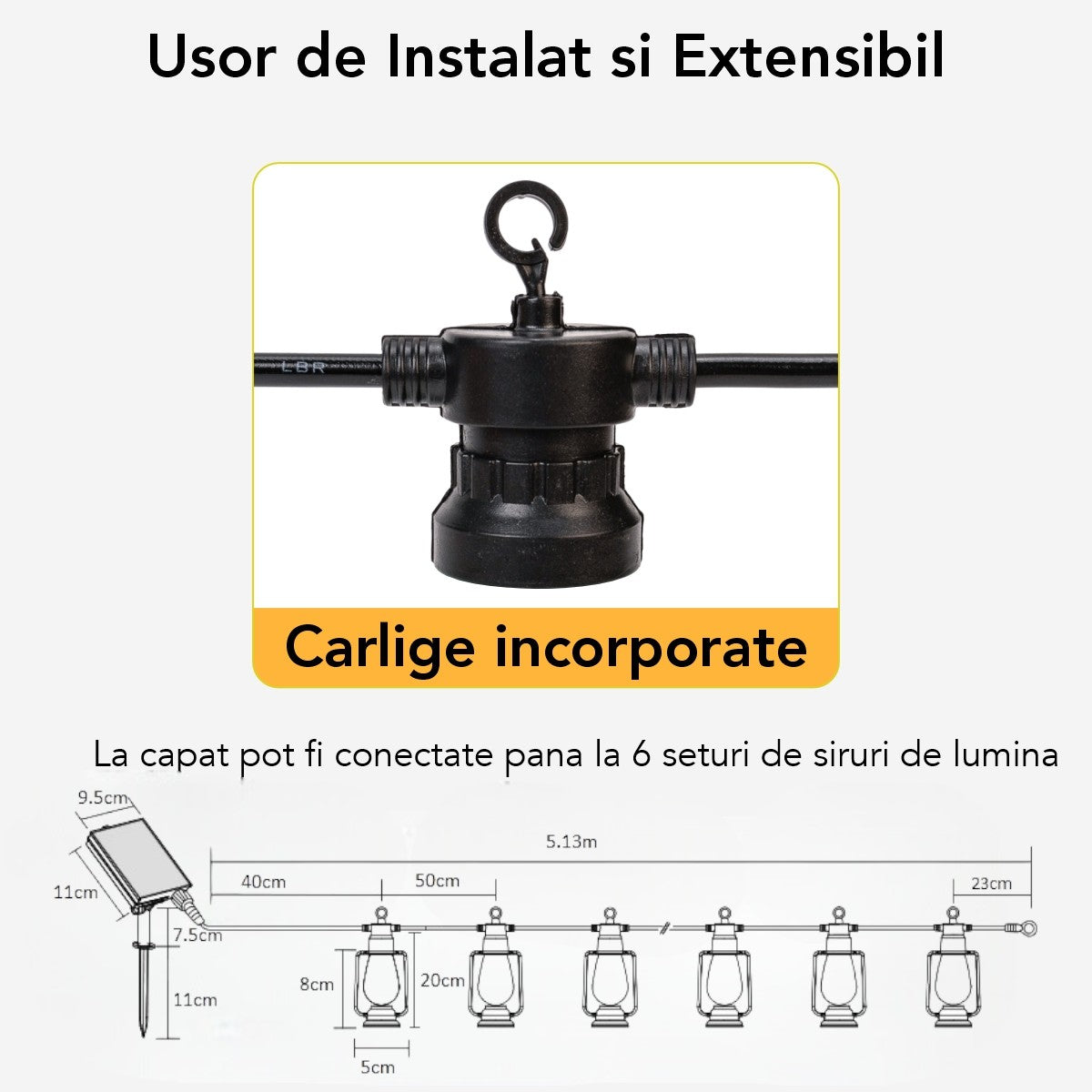 Fiecare bec este protejat de o carcasa durabila, care asigura rezistenta la intemperii, ceea ce face ghirlanda potrivita pentru utilizare în exterior.