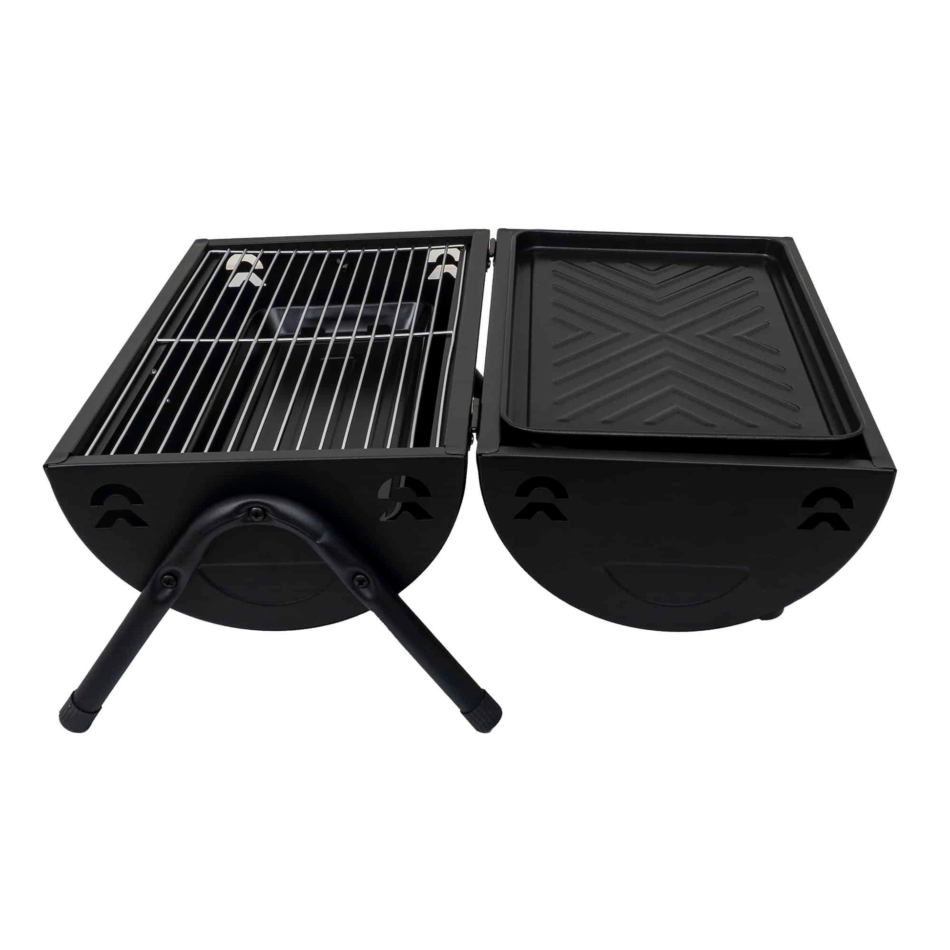 Gratar metalic, cilindric, cu 2 grile de gatit, negru.