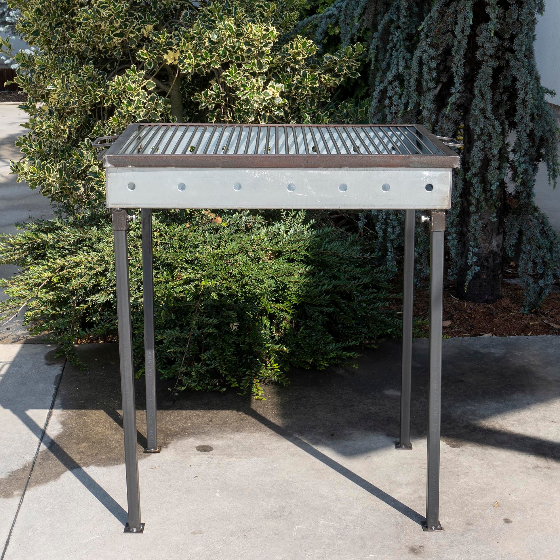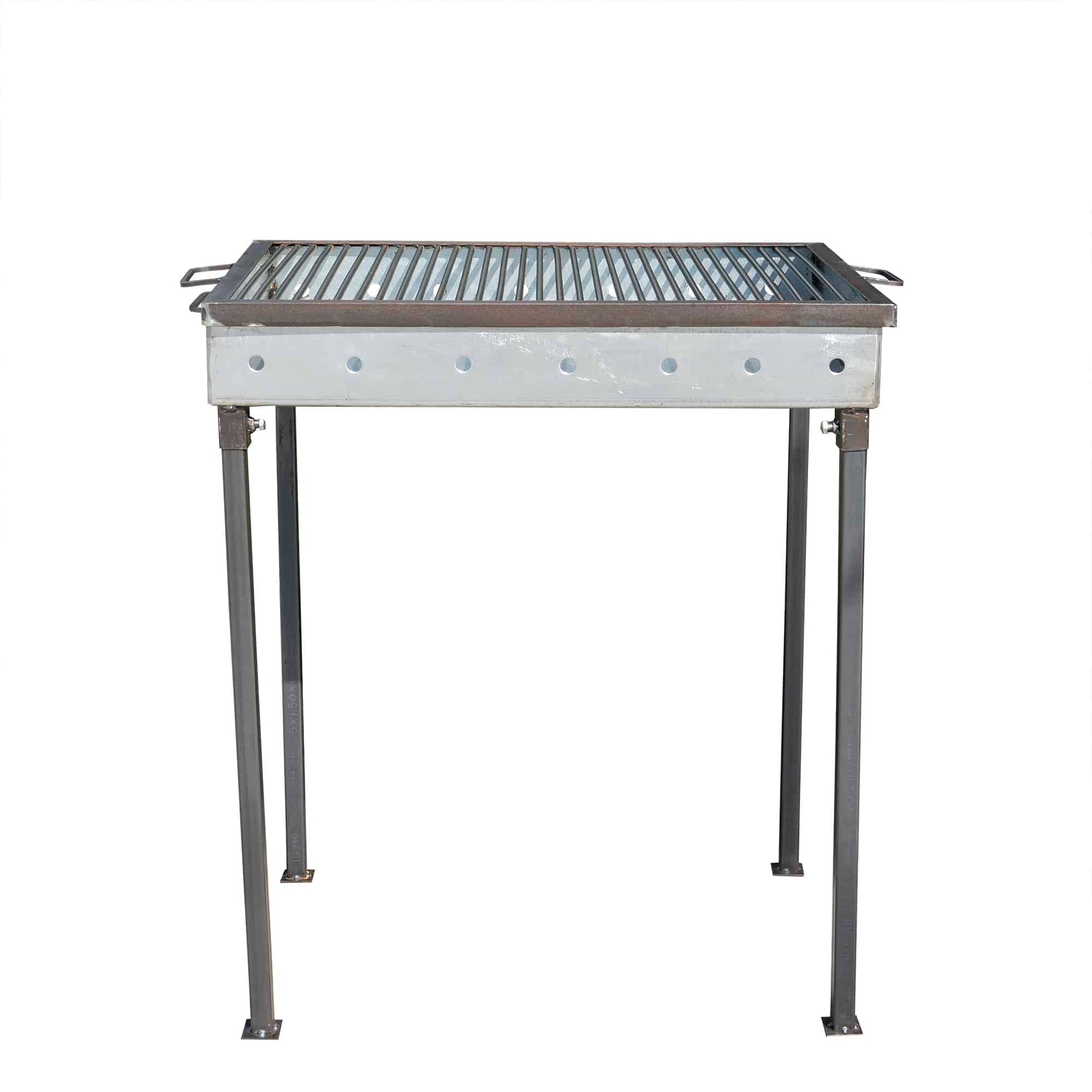 Gratar de gradina traditional din tabla cu o grosime de 2 mm ce dispune de picioare demontabile astfel incat poate fi transportat cu usurinta.Gratarul mai este prevazut pe laterale si cu gauri care ajuta sa aiba un tiraj bun pentru mentinerea jarului.