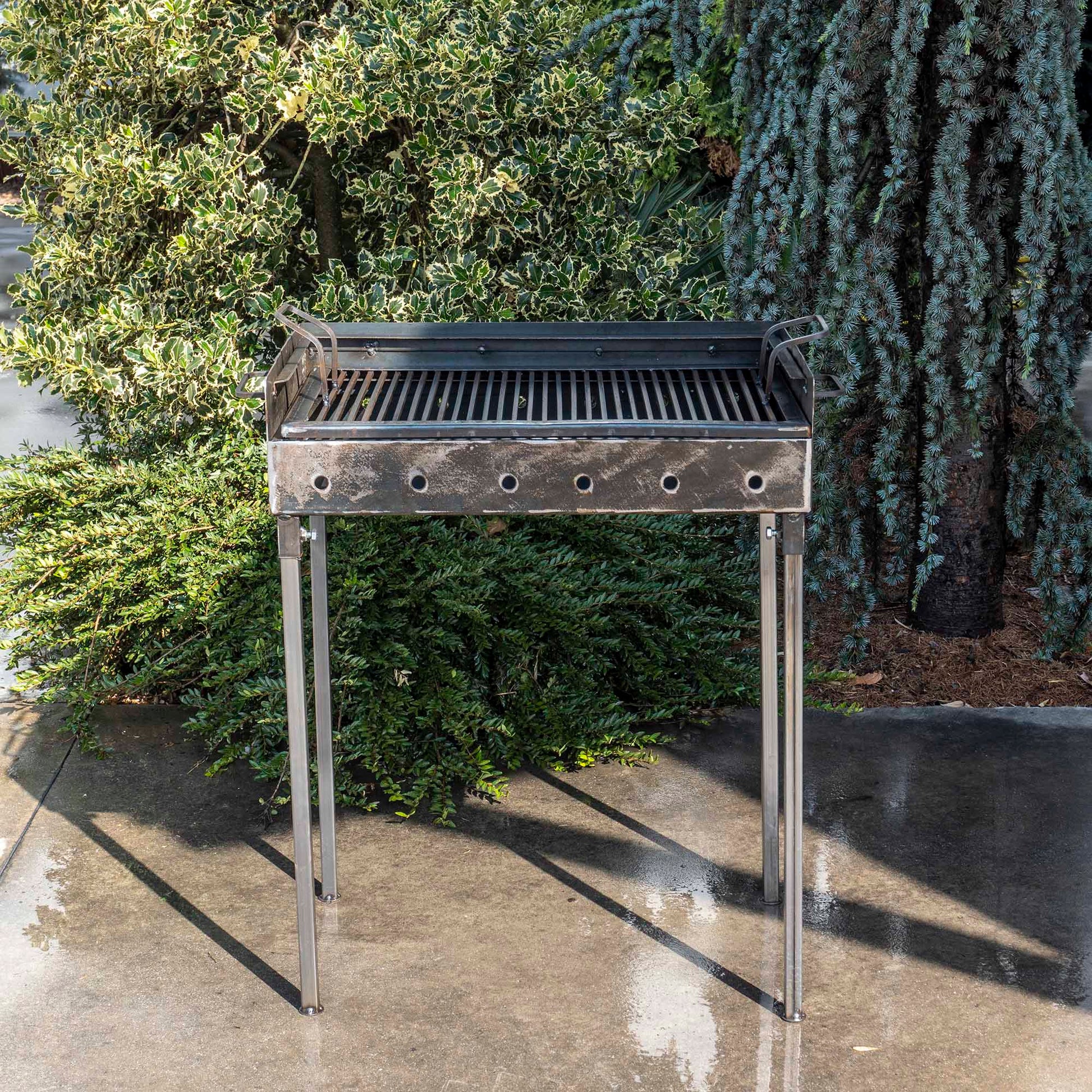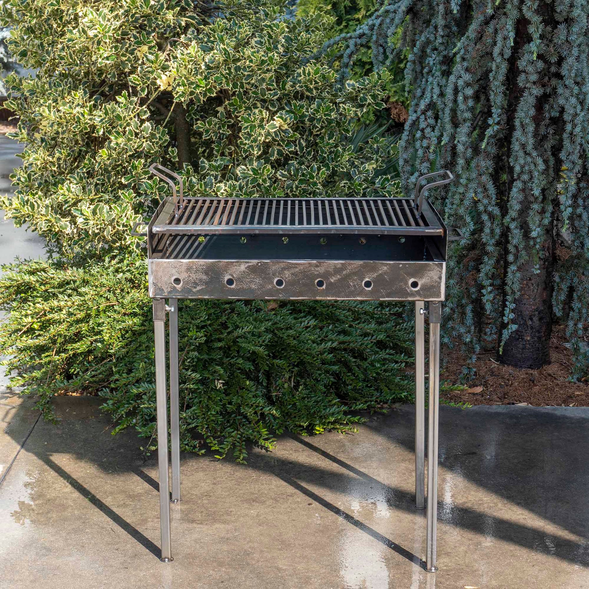 Gratar de gradina cu 2 nivele, traditional din tabla cu o grosime de 2 mm ce dispune de picioare demontabile astfel incat poate fi transportat cu usurinta.Gratarul mai este prevazut pe laterale si cu gauri care ajuta sa aiba un tiraj bun pentru mentinerea jarului.