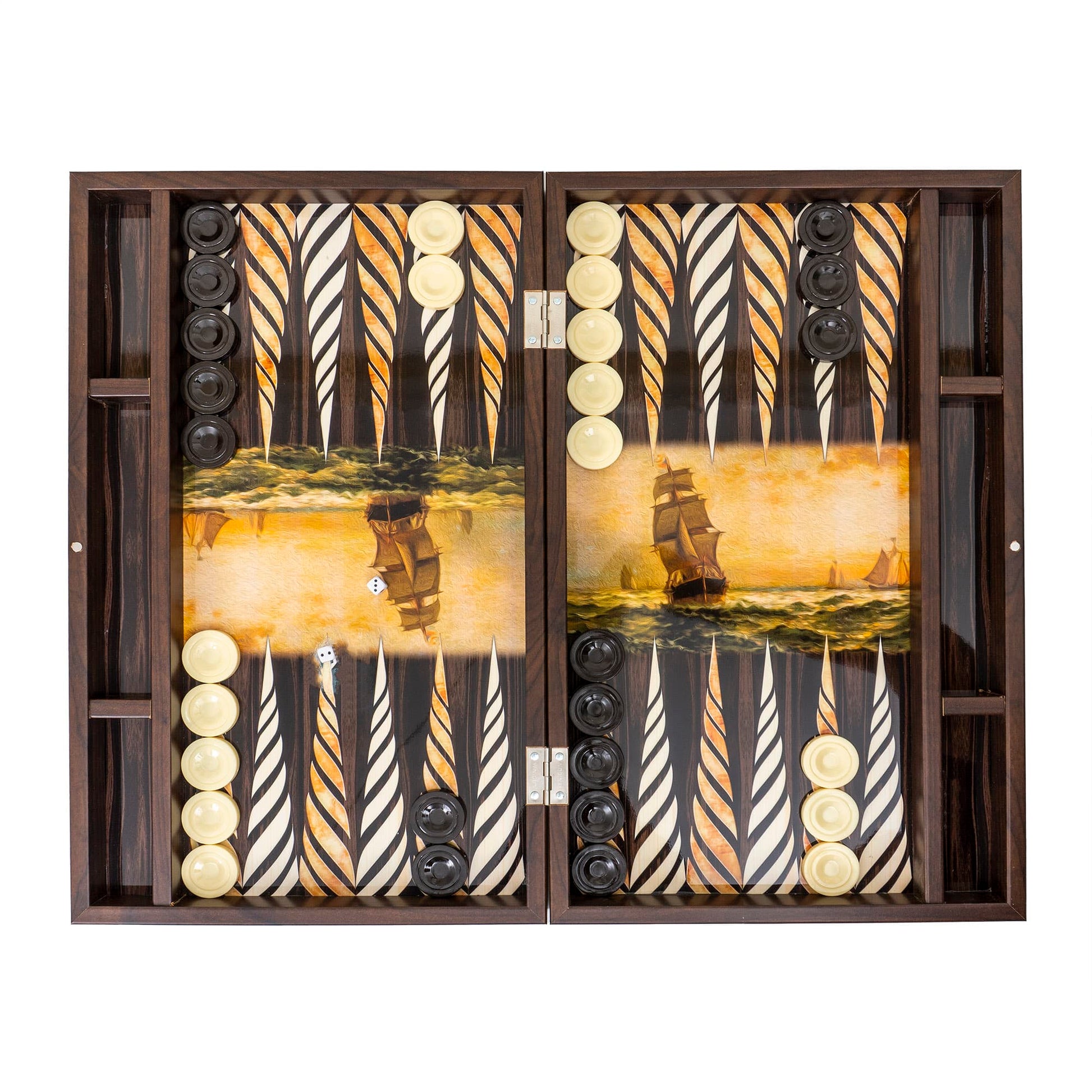 Joc de table din lemn lacuit, model corabie (GEMILER) 48x58cm.