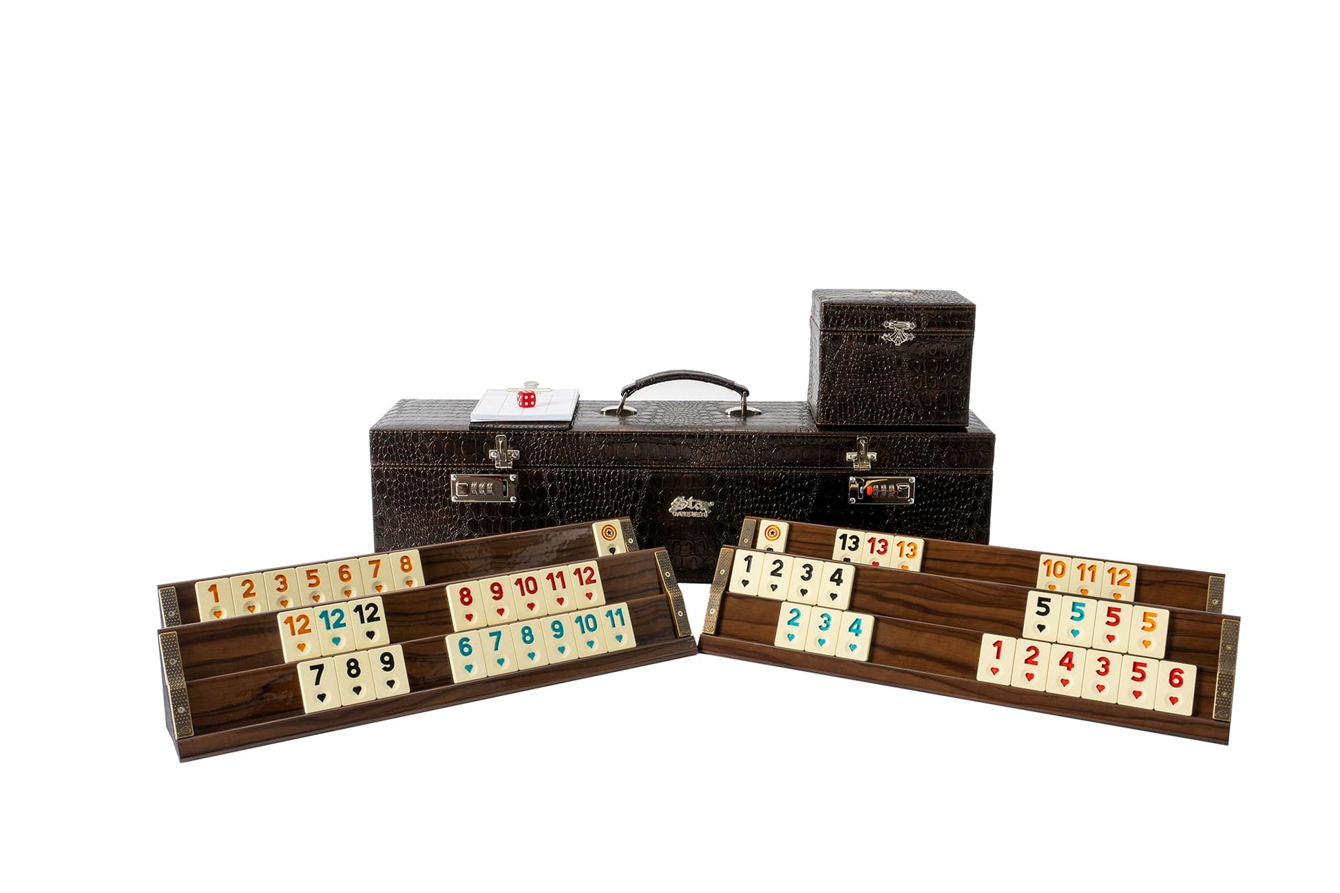 Un joc de remi cu adevarat deosebit cu tablite din lemn atent lucrate si lacuite si piese din plastic.