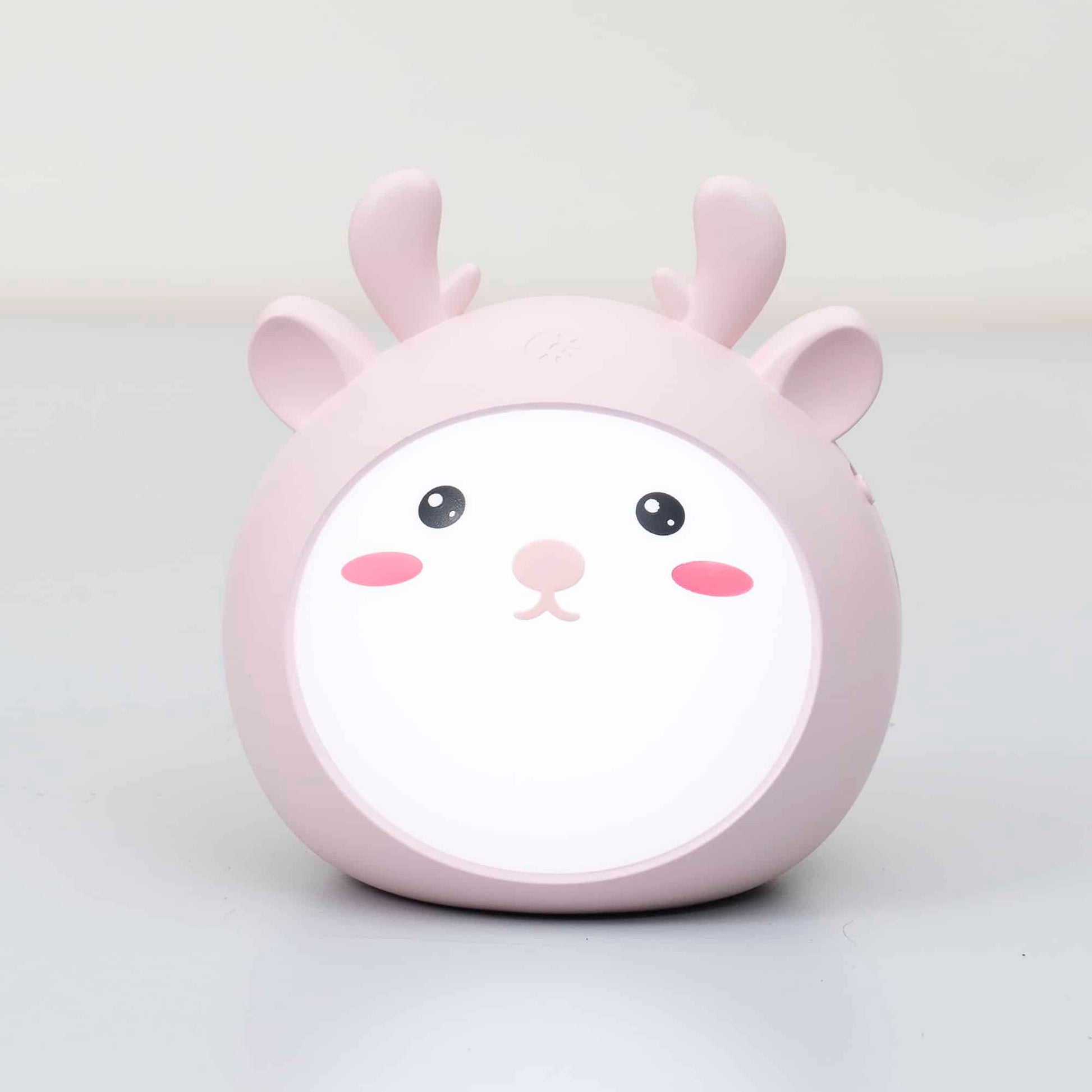Lampa de veghe pentru copii, 3 tipuri de lumina, putere 4.2W, touch, USB, model ren roz.