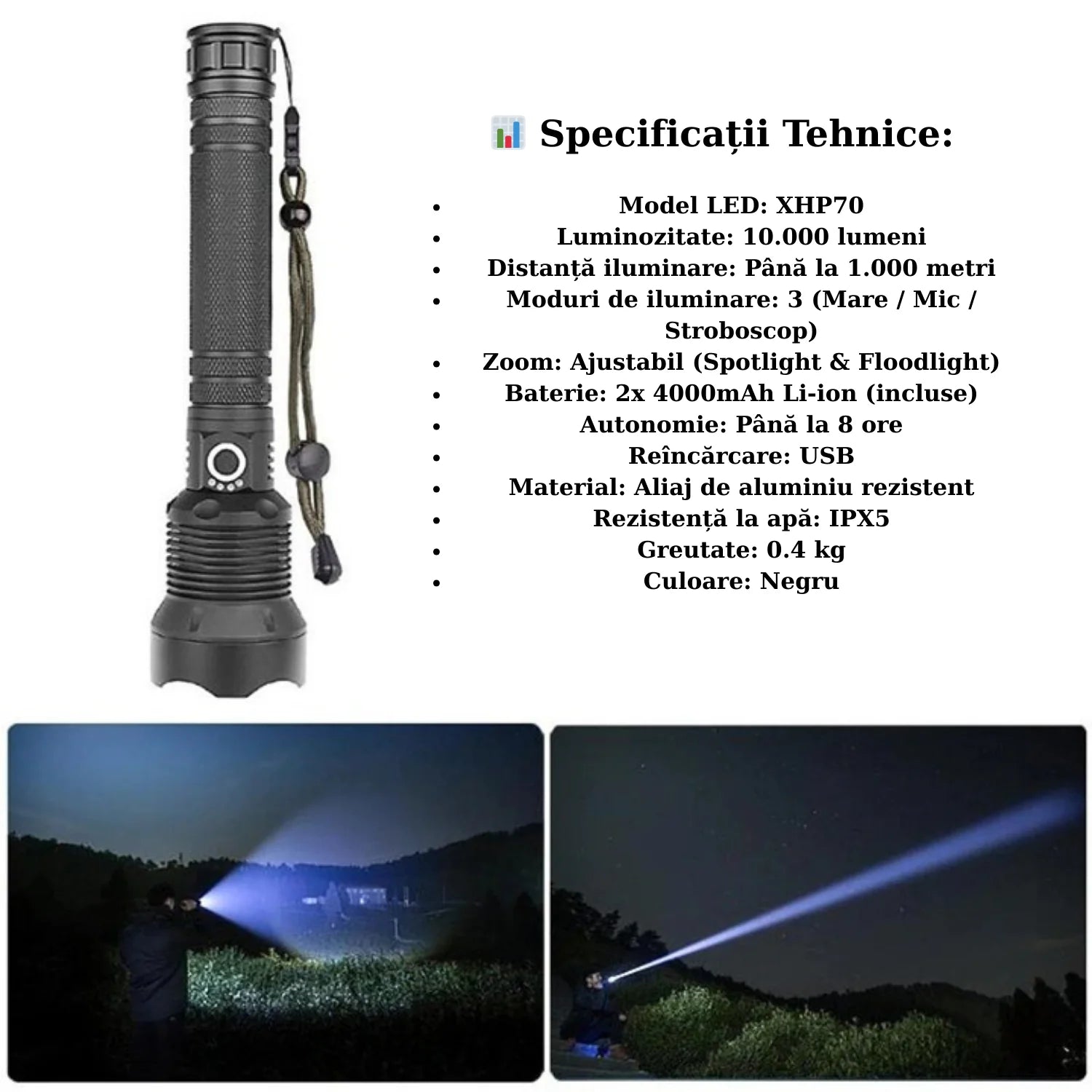 🔹 1x Lanternă LED XHP70