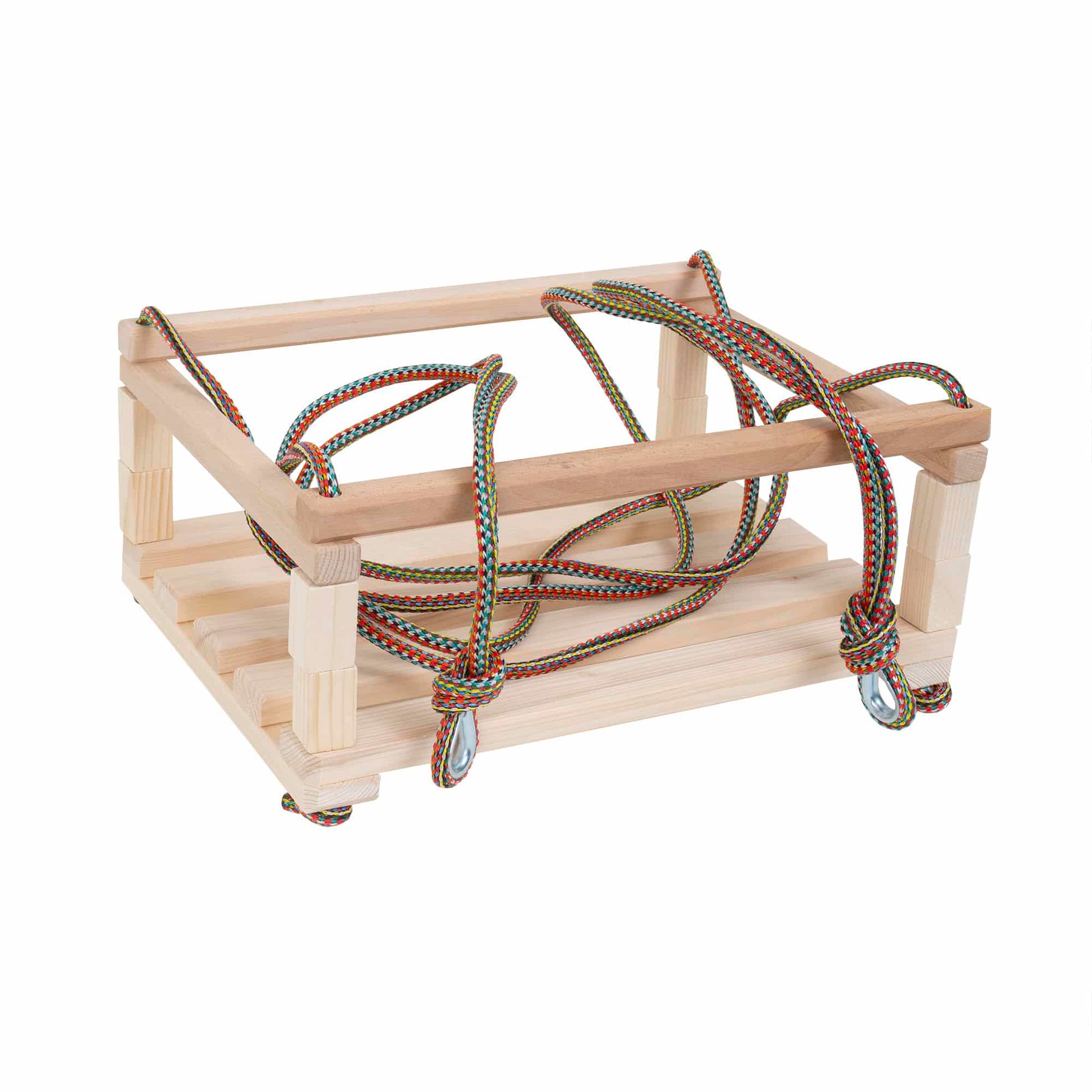 Leagan din lemn pentru copii, confectionat din materiale rezistente, care va oferii o distractie maxima pentru cel mic. Poate fii utilizat atat in exterior, cat si in interior. Este complet echipat cu franghii sintetice reglabile, precum si inele de fixare. (NU include cadru sau bara de sustinere, carabine sau carlige!)