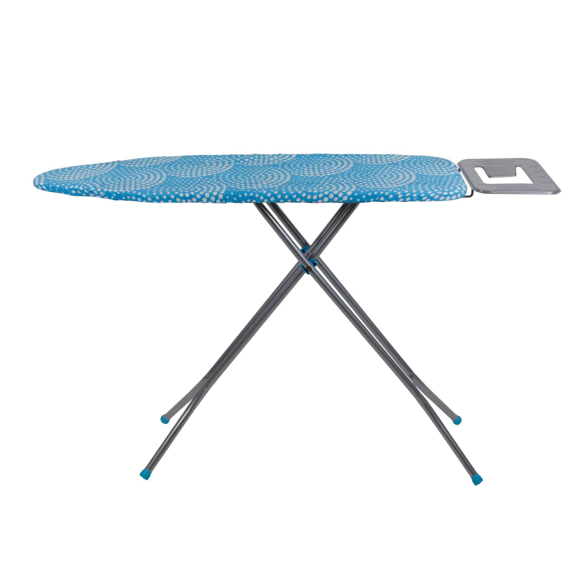 Masa de calcat cu cadru Metalic vopsit in camp electrostatic cu o dimensiune de 33x110 cm. Are blat din plasa Metalica perforat special pentru trecerea aburilor si suport pentru fierul de calcat,Usor de folosit,ocupand putin spatiu datorita faptului ca se pliaza.