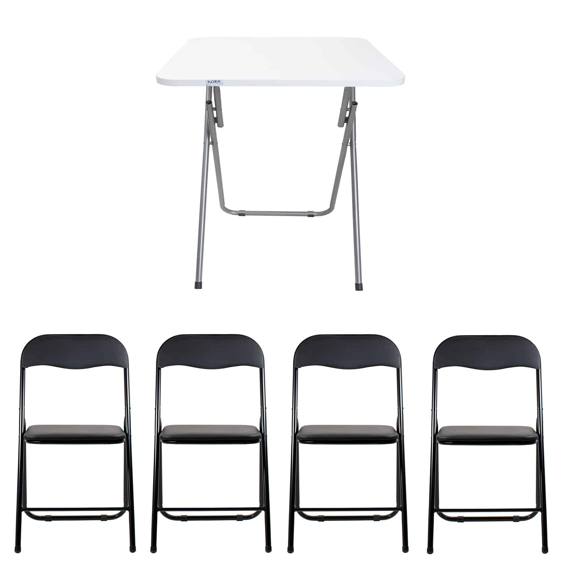 Masa plianta cu blat mdf, dimensiuni 60x60x72cm, alb (ZLN 7002) plus 4 x scaun bucatarie pliant (DSY 1115).