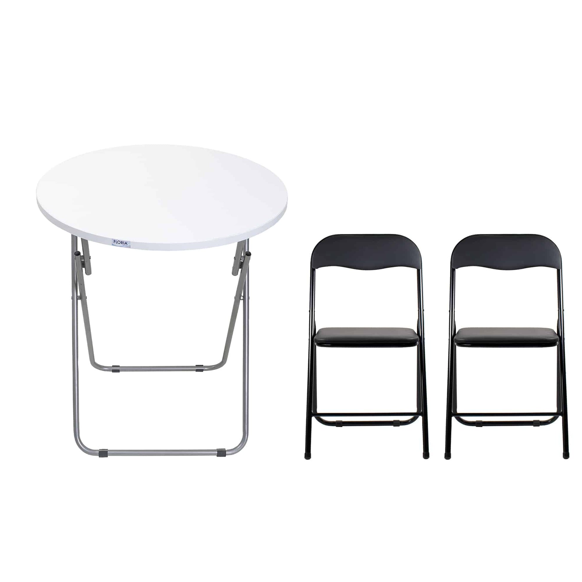 Masa plianta rotunda cu blat mdf, dimensiuni 60x65cm, negru (ZLN 6968) plus 2 x scaun bucatarie pliant (DSY 1115).