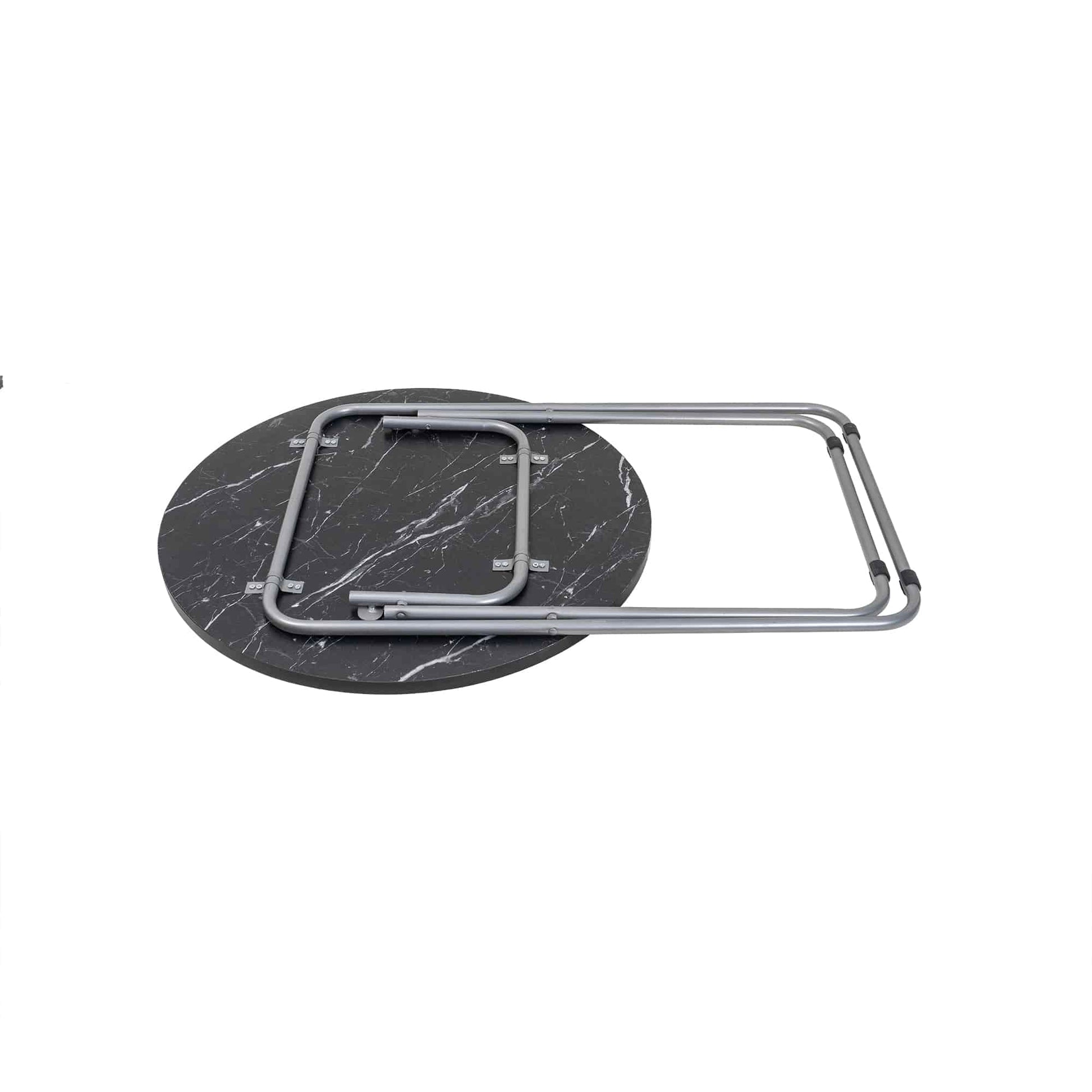 Masa plianta rotunda cu blat mdf, dimensiuni 60x65cm, negru (ZLN 6951) plus 2 x scaun bucatarie pliant (DSY 1115).