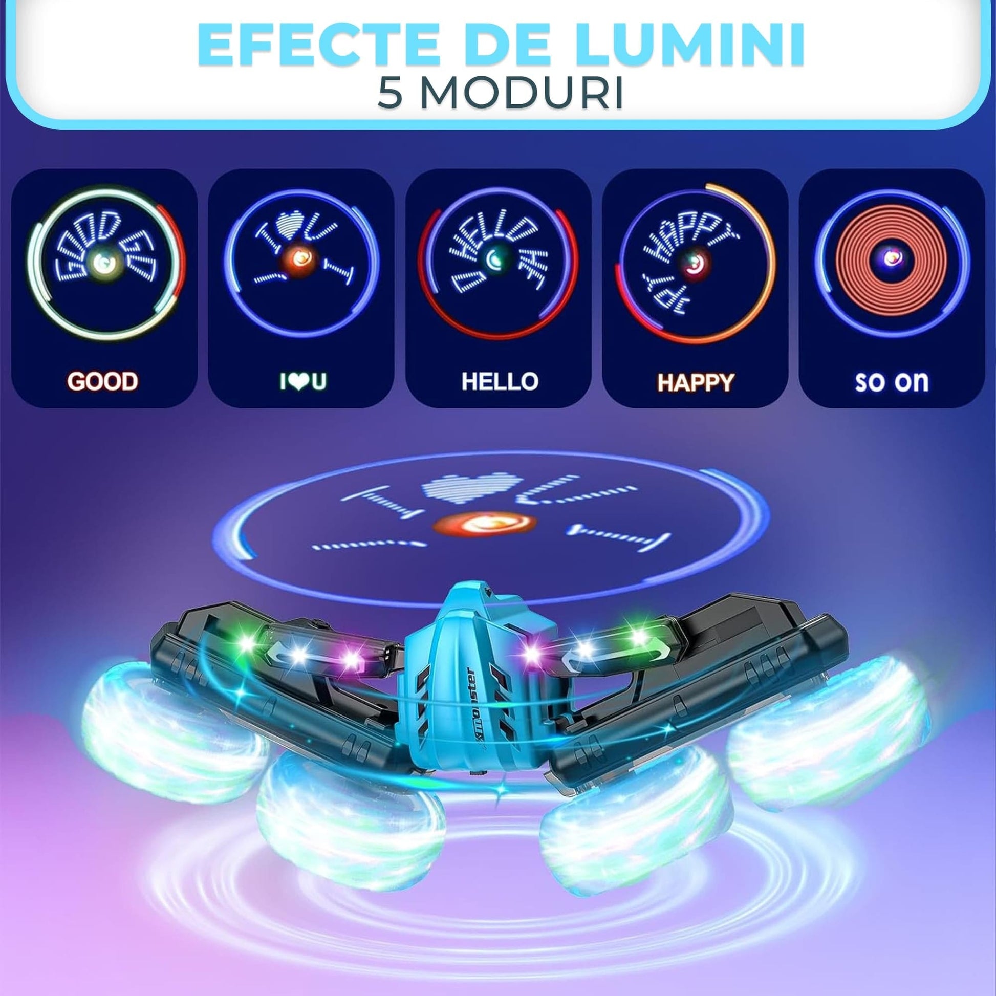 Masina RC 3-in-1 Timebox cu Jet de Apa si Control prin Gesturi – Monster Truck Stunt Off-Road & Barca Telecomandata 4x4, Rotatie 360°, Rezistenta la Apa, Cadou Interactiv pentru Copii 6-12 Ani, Albastru