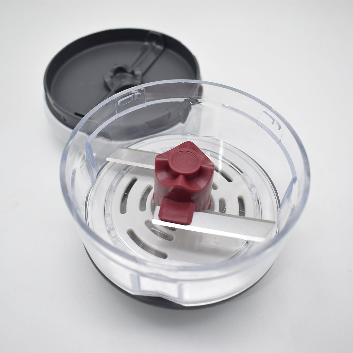 Partea principală a acestui tocator este un recipient transparent, care