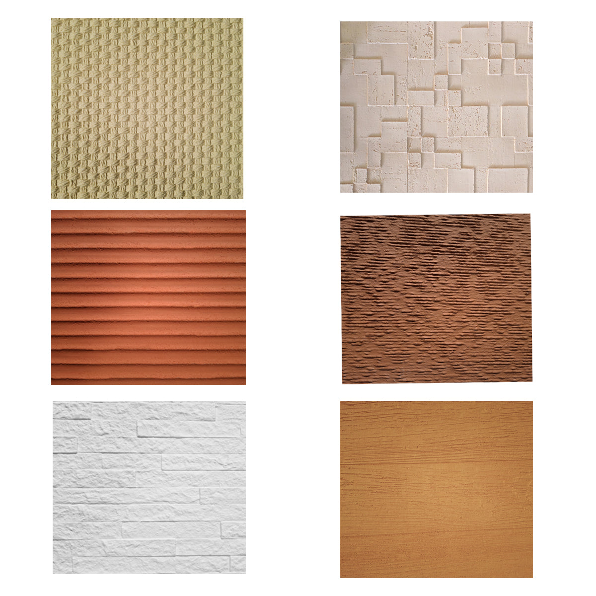 Mostrar 6 modele panouri din praf de piatra ,Naimeed F22, flexibile, ignifuge, rezistente la razele UV, finisate cu un strat protector ceramic.