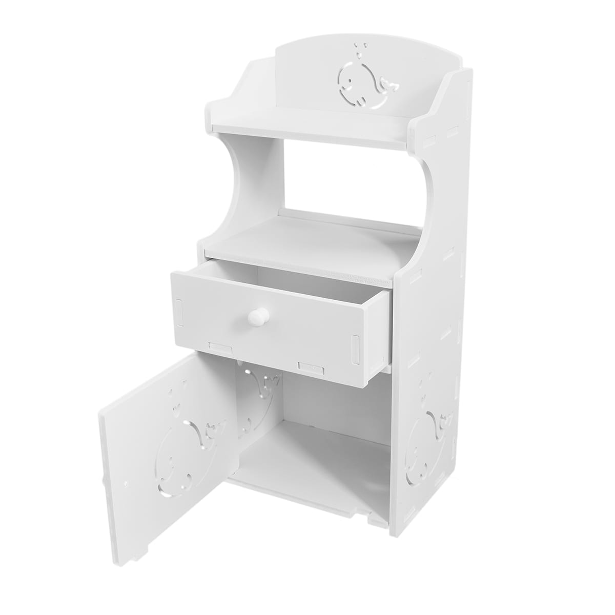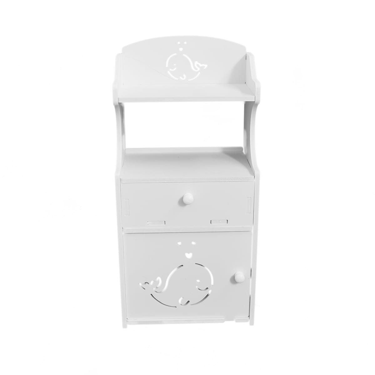 Noptiera cu 2 rafturi, dulapior si sertar, Naimeed D35, culoare Alb, 50,6 x 14,1 x 17 cm