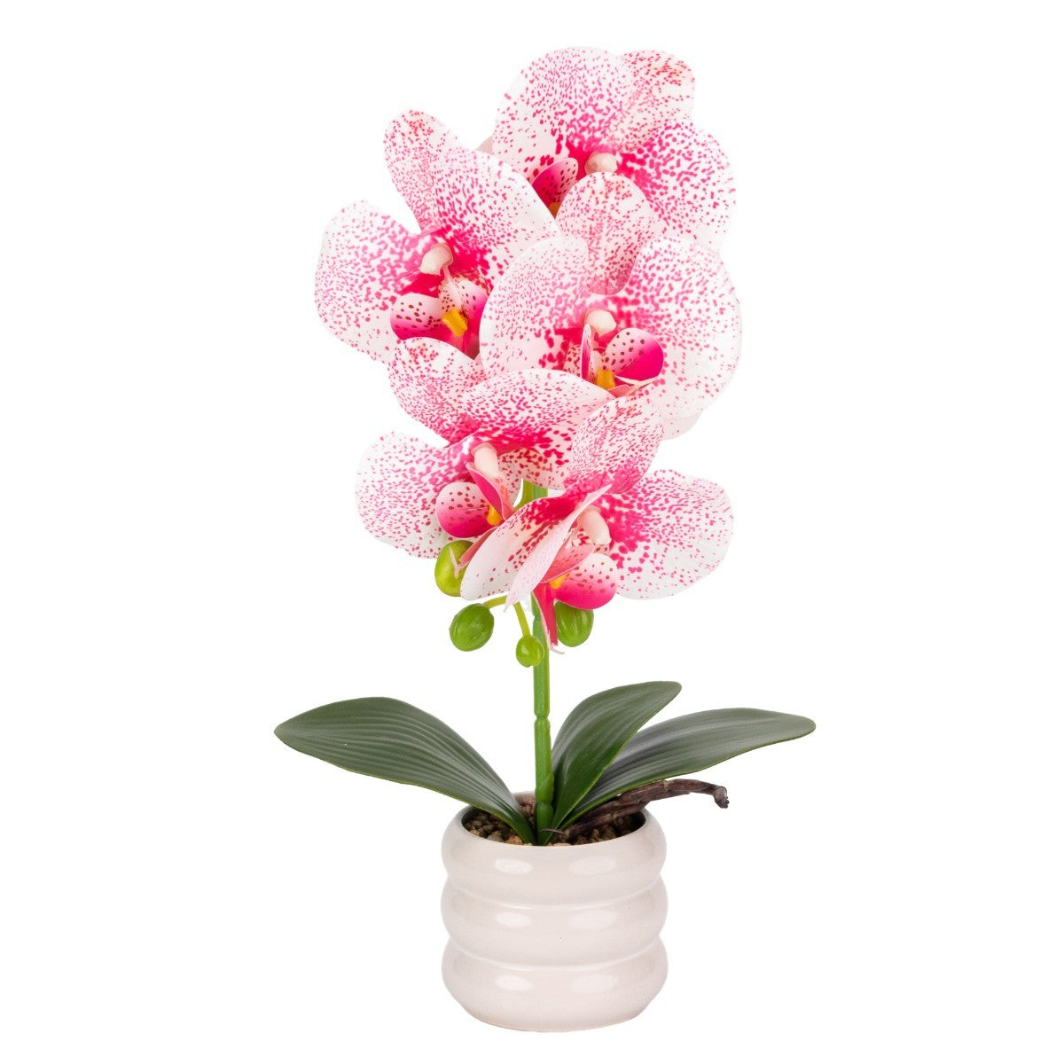 Orhidee cu aspect natural in ghiveci ceramic, 40 cm, Naimeed D6888, Alb-roz