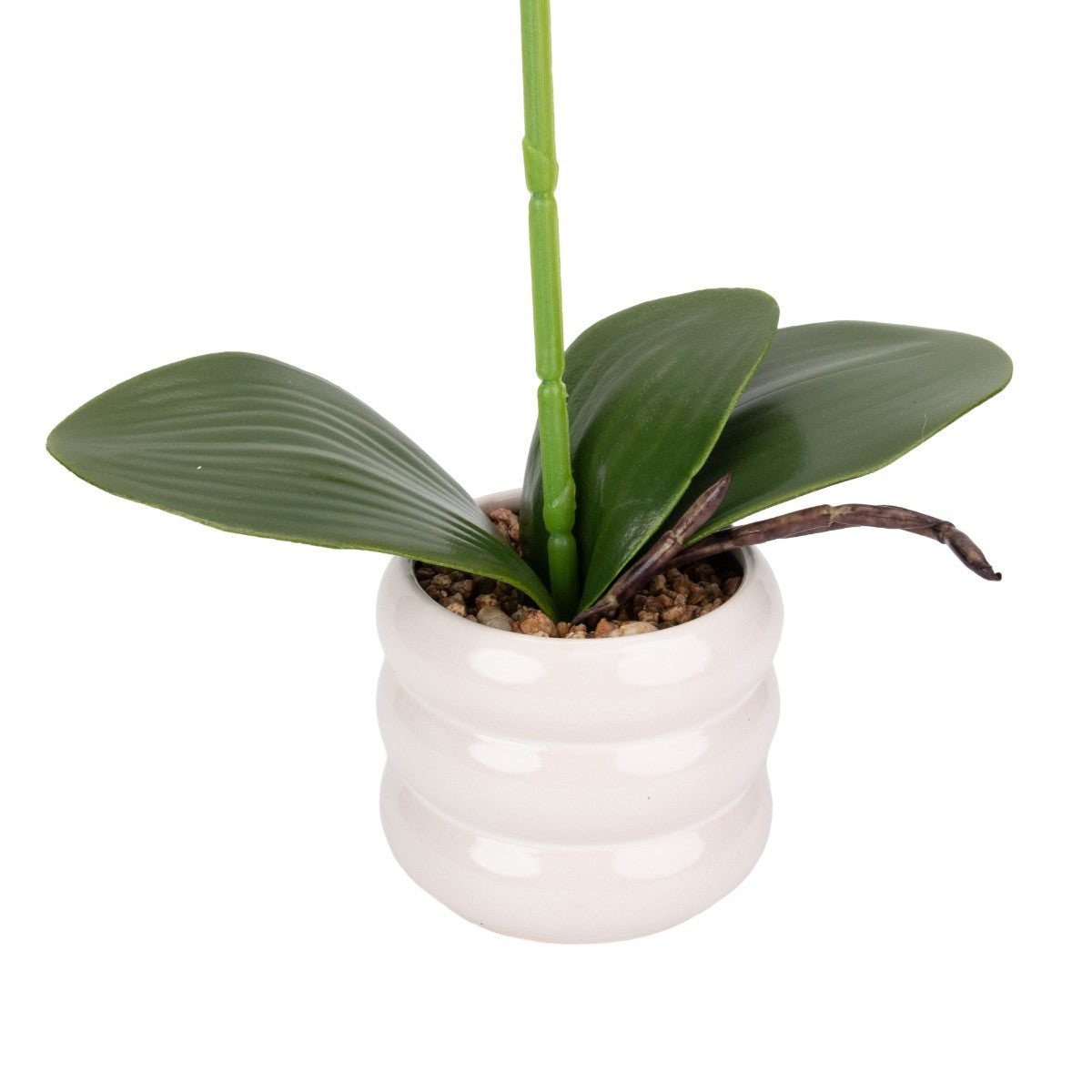 Fie ca vorbim de living, dormitor sau chiar birou, aceasta orhidee artificiala in ghiveci ofera un accent cochet pentru un decor modern si elegant.