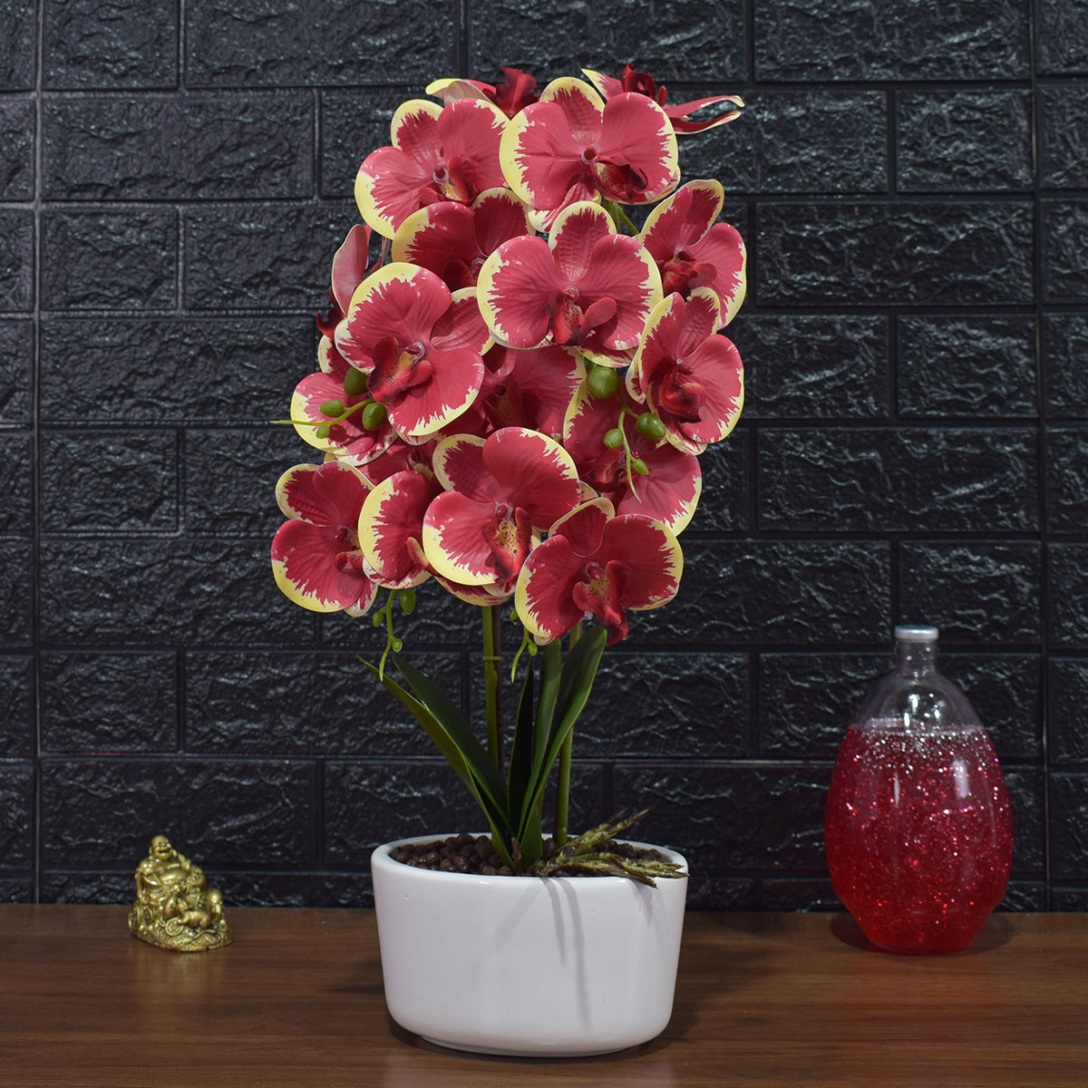 Orhidee cu aspect natural in ghiveci ceramic, 50 cm, Naimeed D4848, Rosu